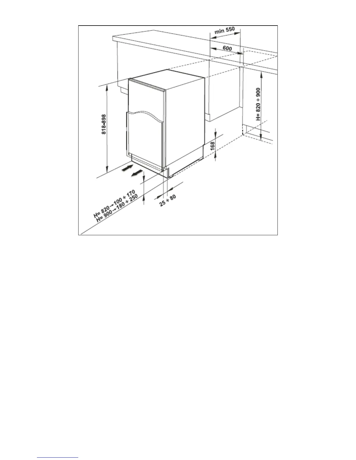 kitchen unit. Allow 38 mm space between the back of the fridge