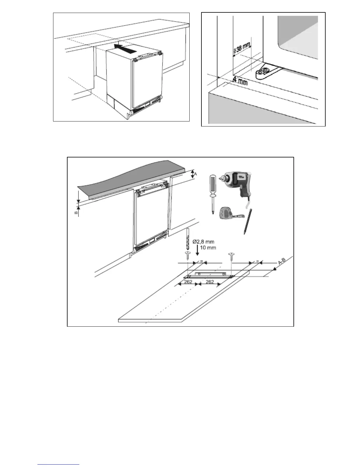 the kitchen worktop. Then take measurement B from the