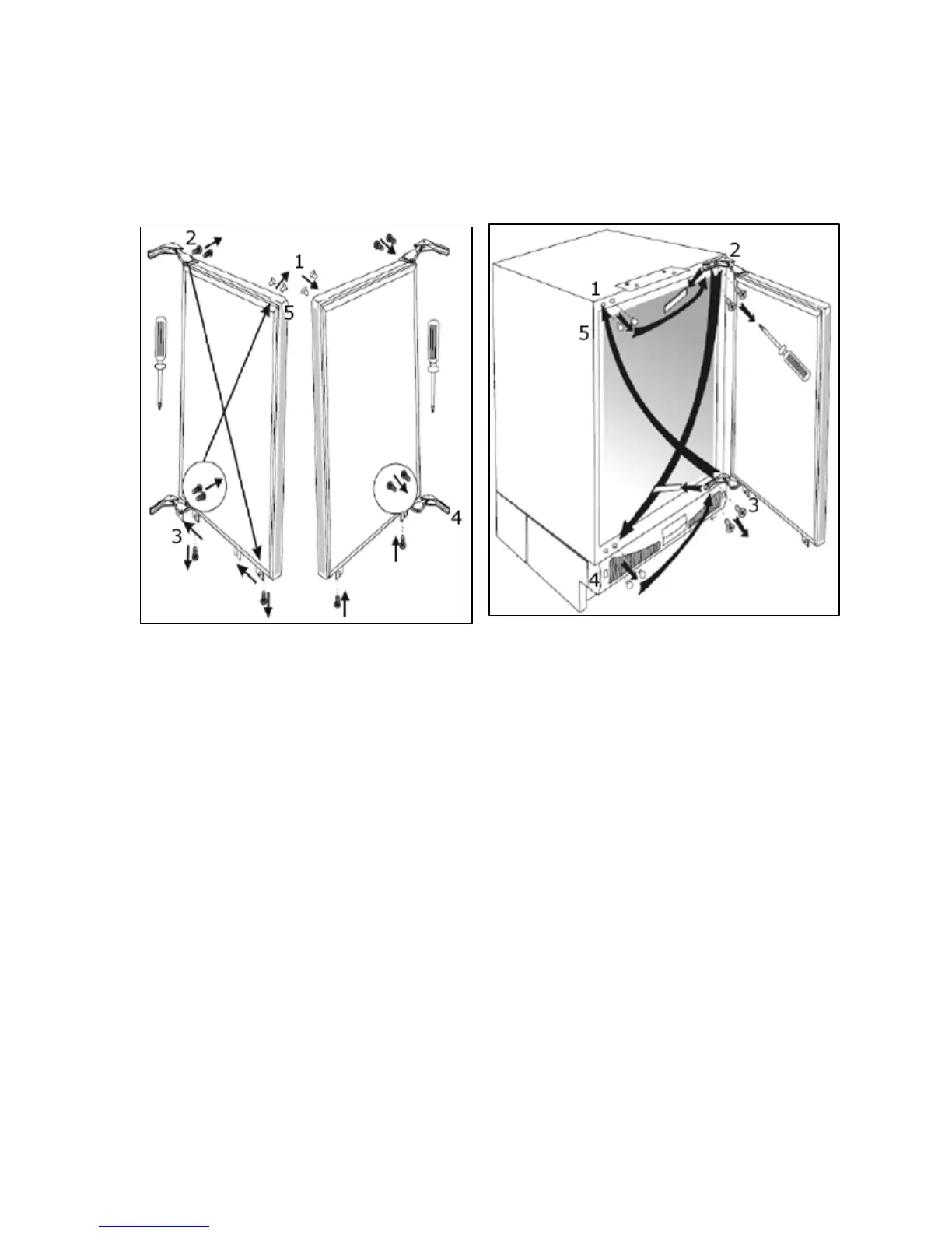 o On the hinge-less side of the fridge door, remove the caps (1)