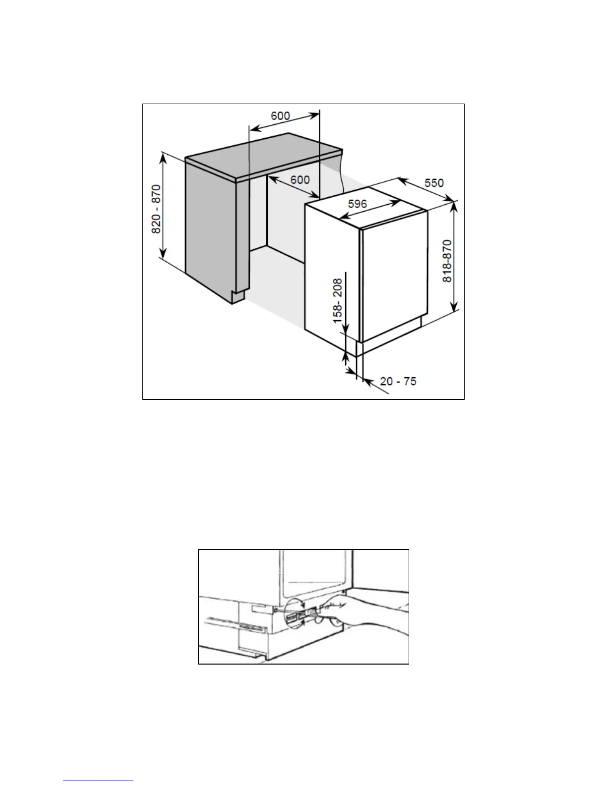 When the appliance has been placed underneath the worktop, you may