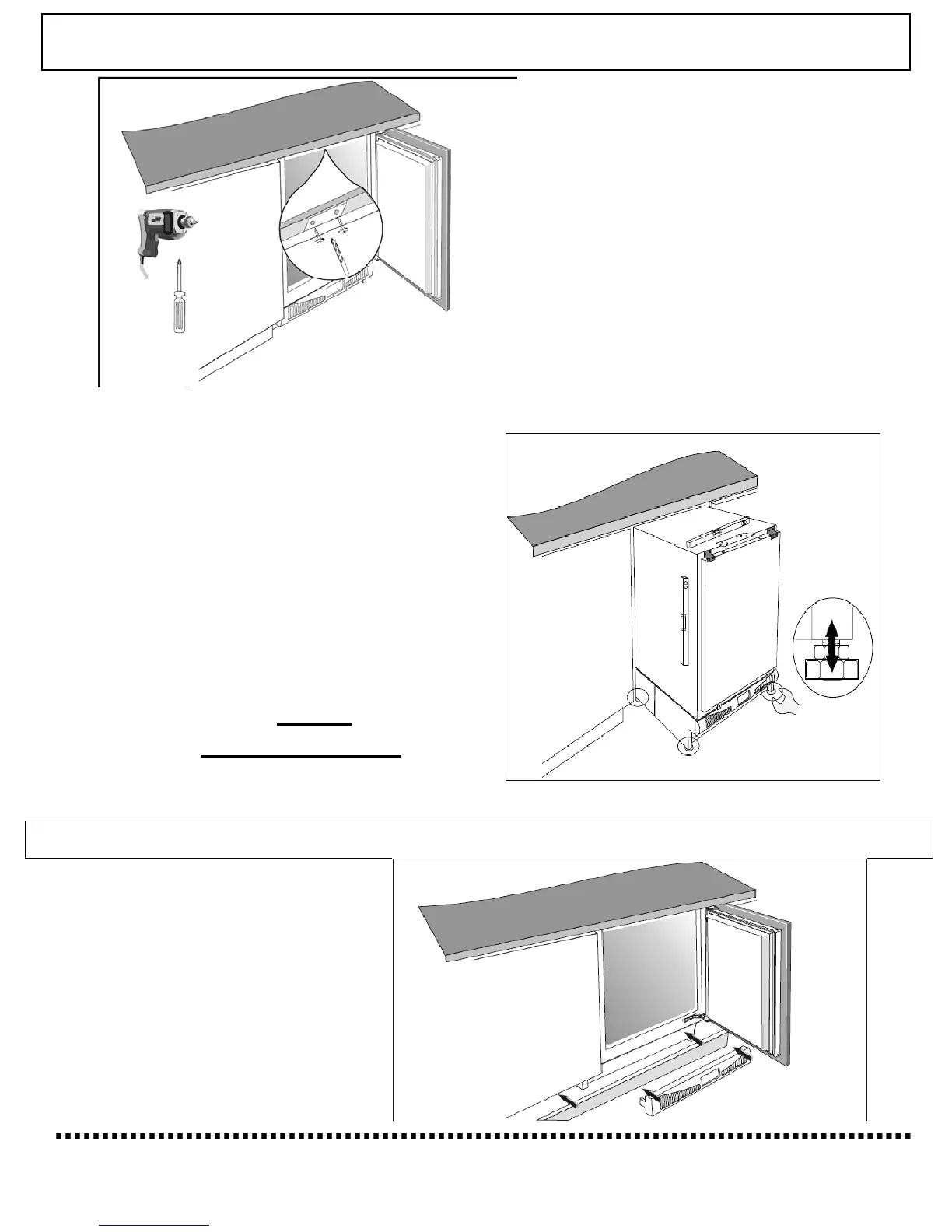 DO NOT MOVE THE FRIDGE WHEN THE FEET ARE EXTENDED HIGH!