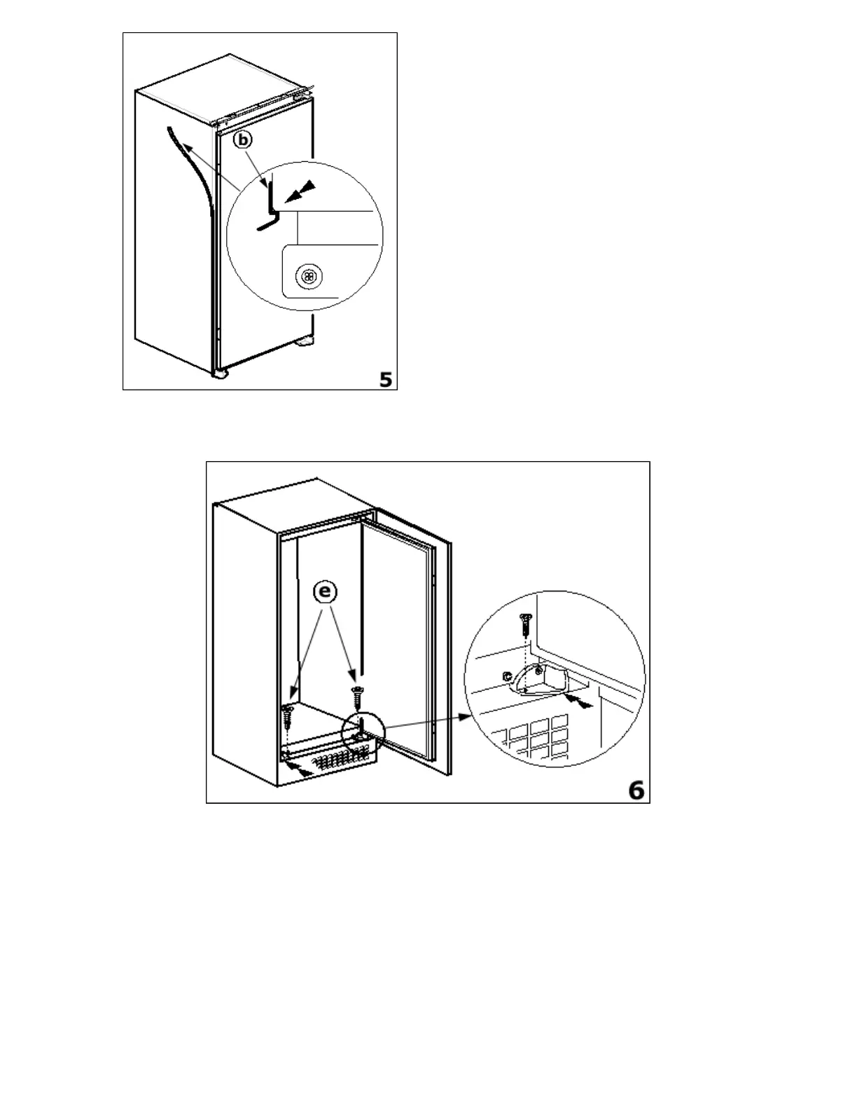 Fix the front feet into position using the Ø4 x 17 fixing screws (e).