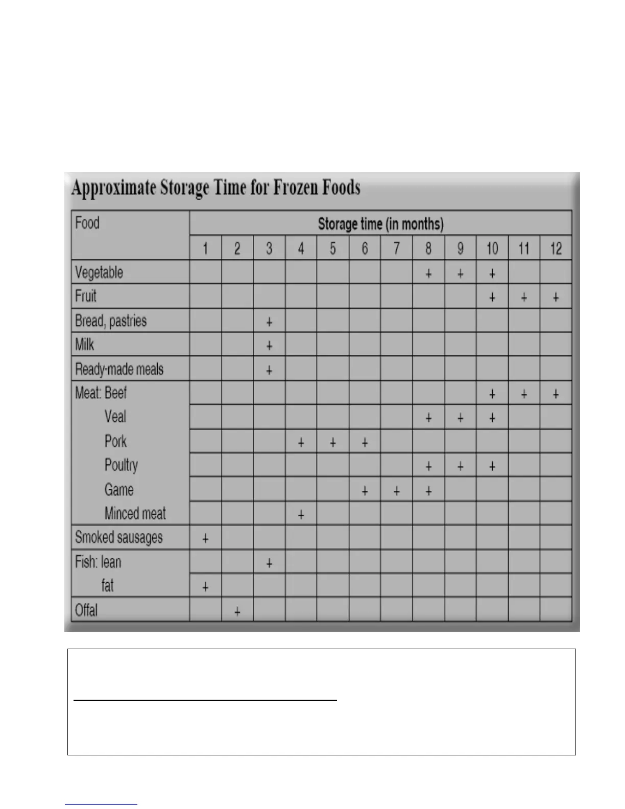 APPROXIMATE STORAGE TIME FOR FROZEN FOODS