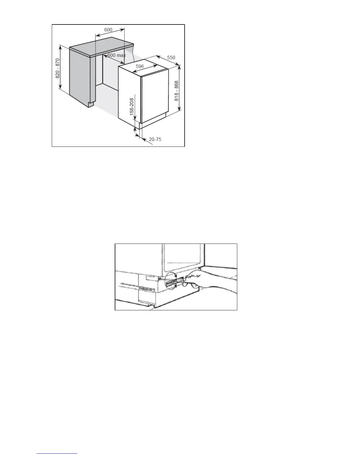 When the appliance has been placed underneath the worktop, you may