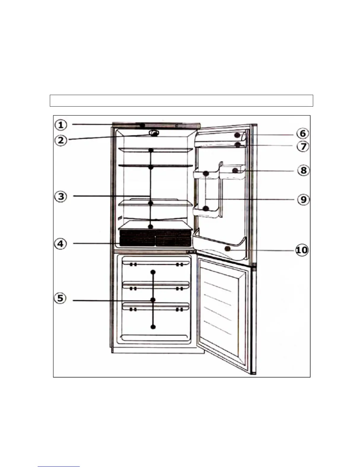 3. Safety glass shelves (x 4) 7. Fridge door shelf