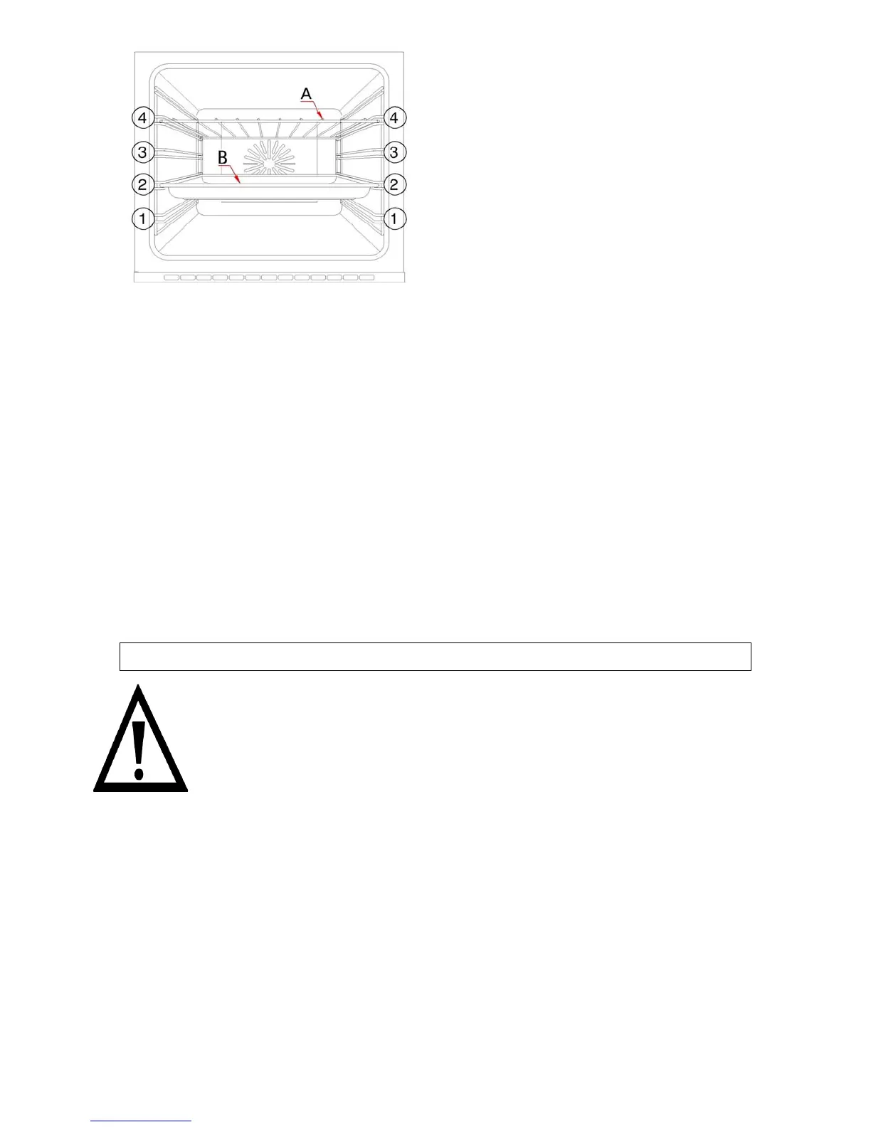 any position (1 to 4) on both sides. The oven shelf has safety stops