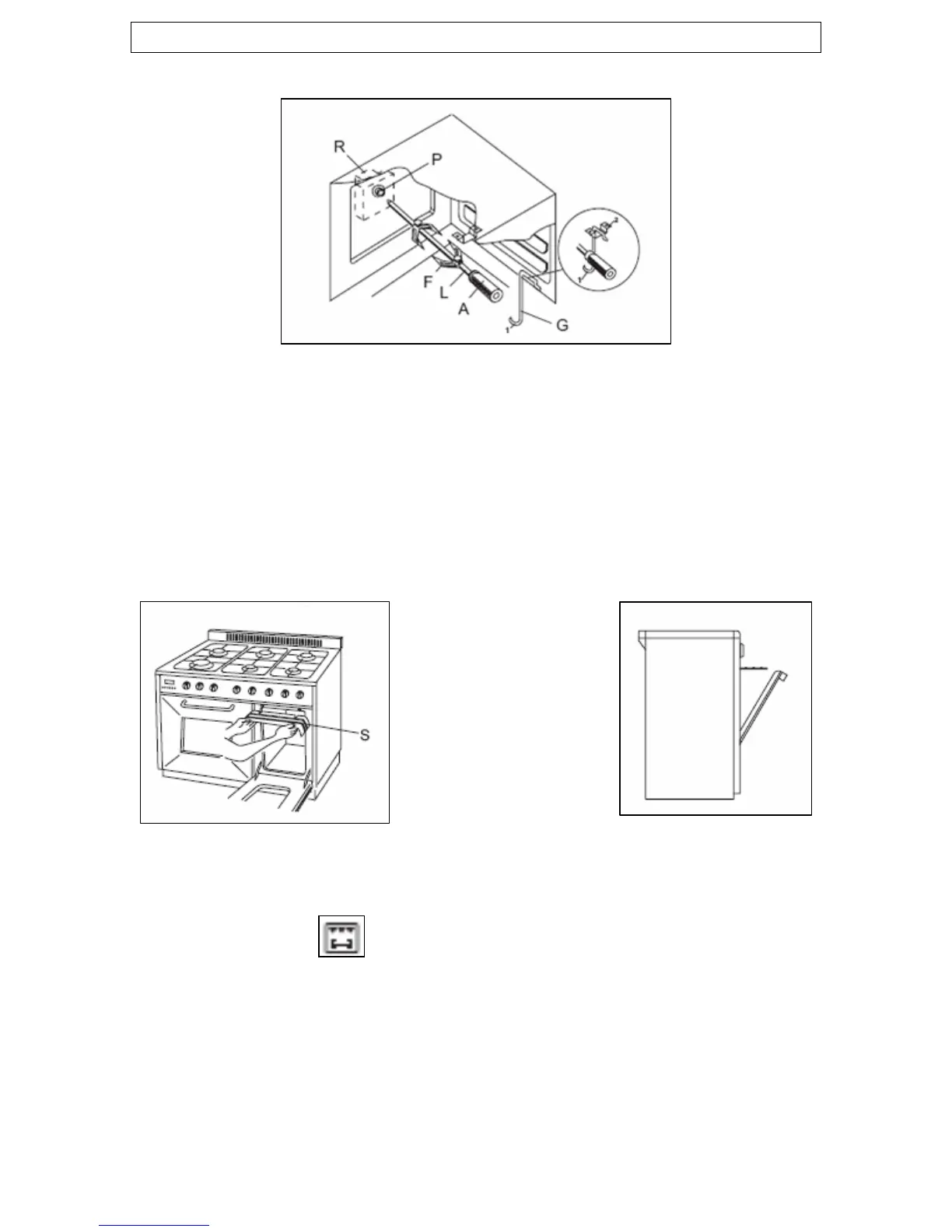o Fit the grill deflector (S) into position and leave the door half