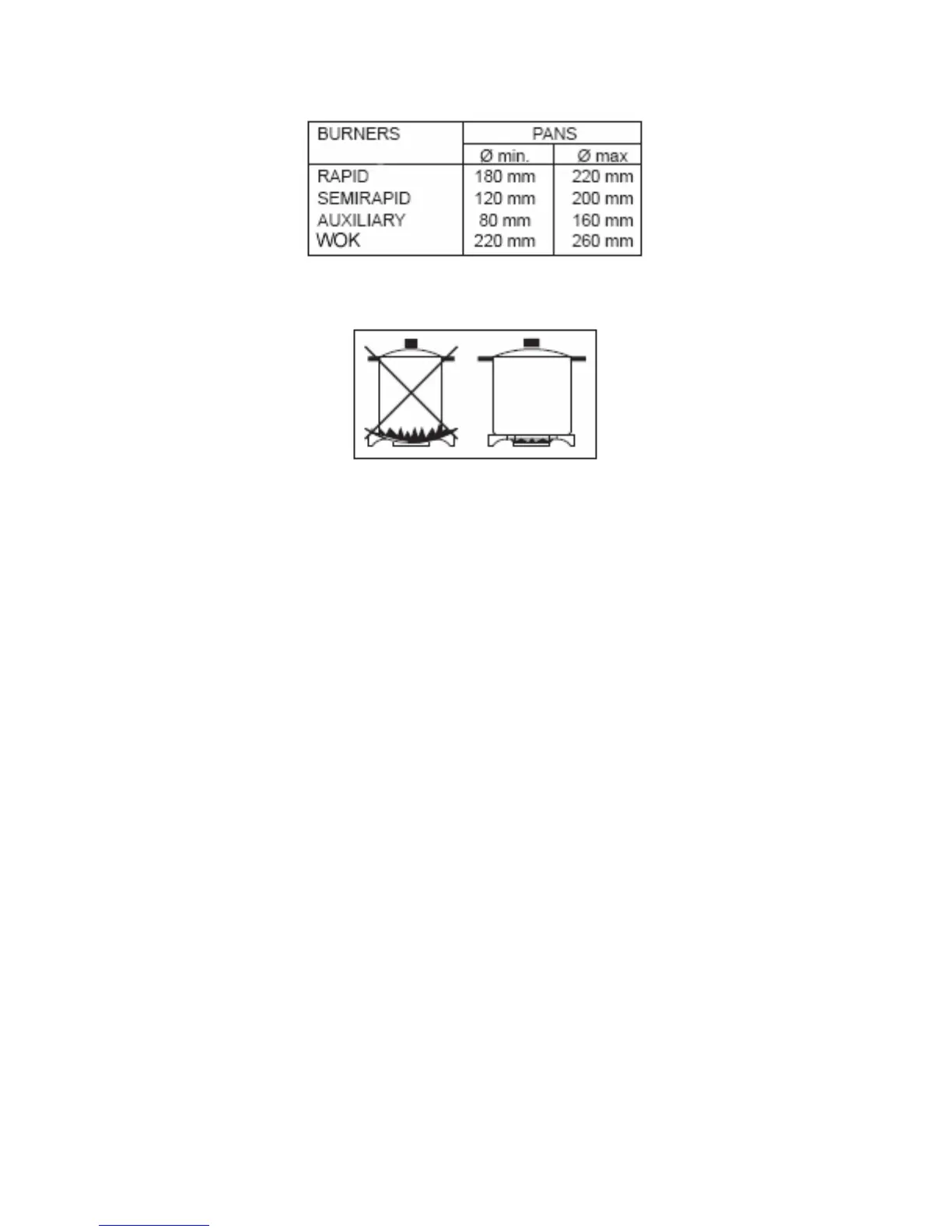 o The burner flame must never extend beyond the diametre of the