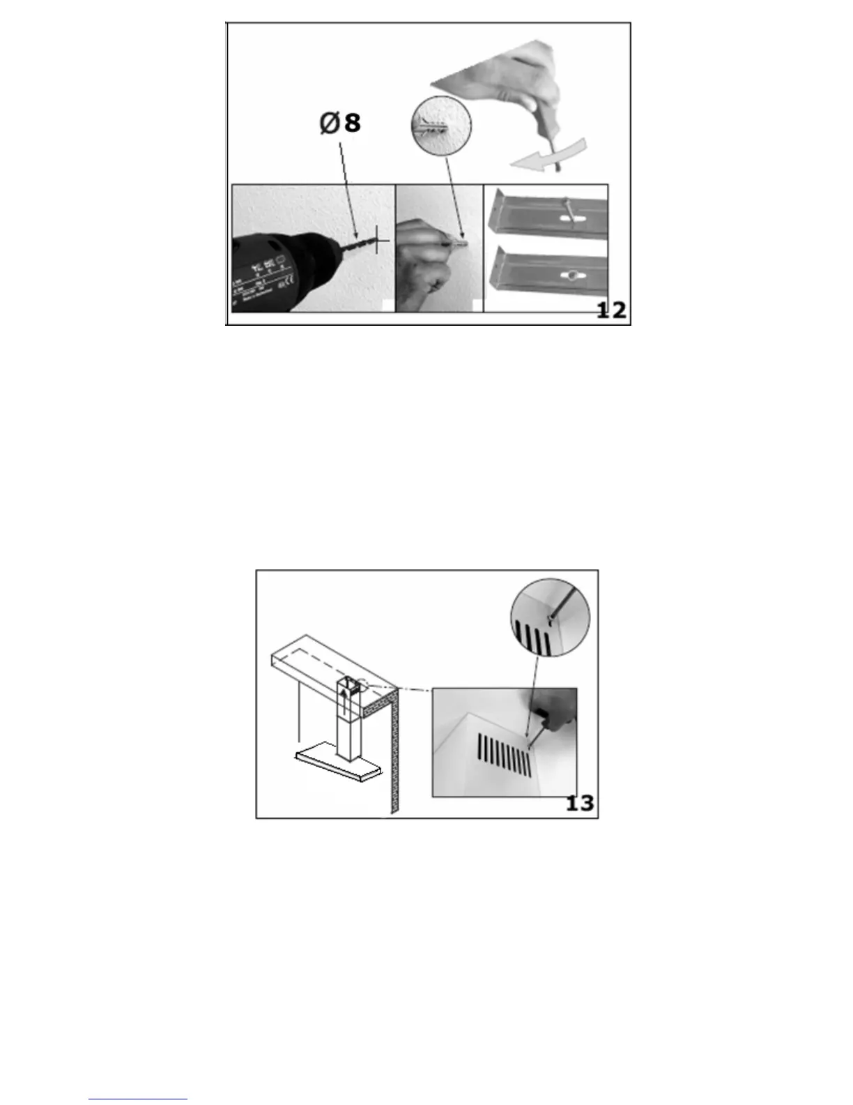 13) Lift chimney section D up to the ceiling and secure it to the fixing