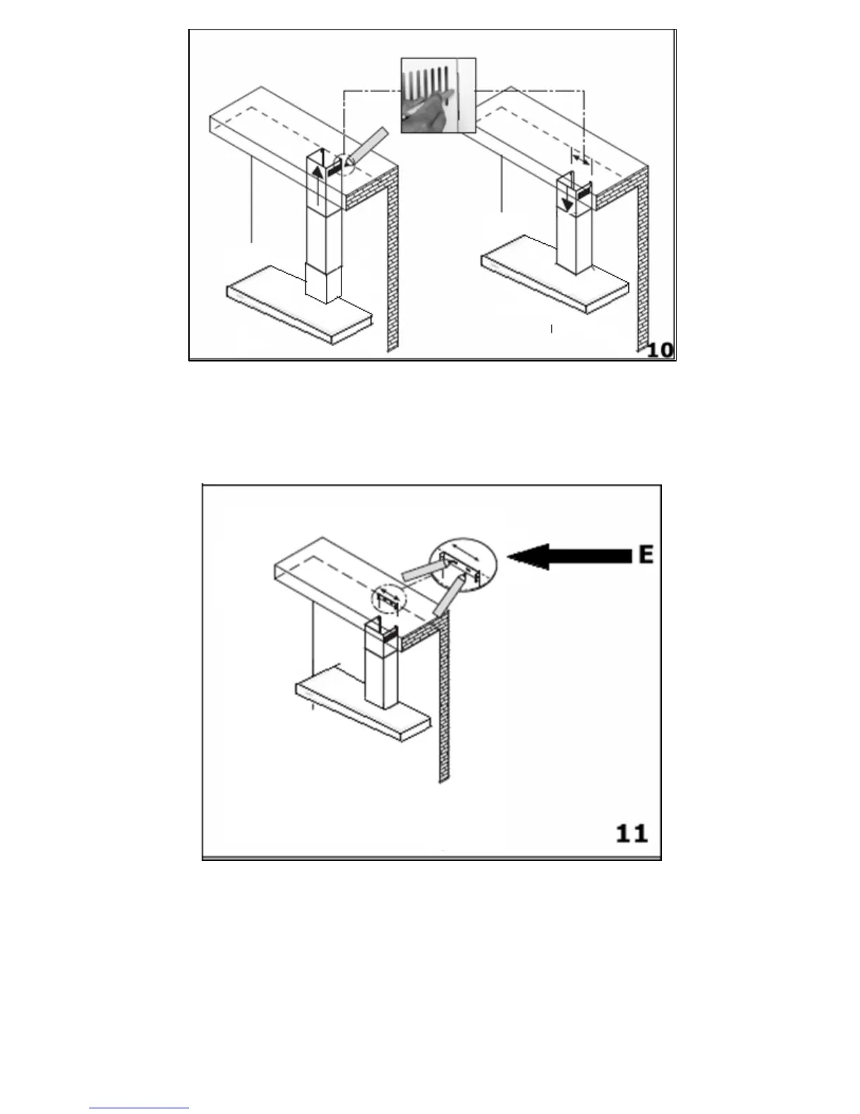 10) Lift chimney section D upwards until it reaches the ceiling. You