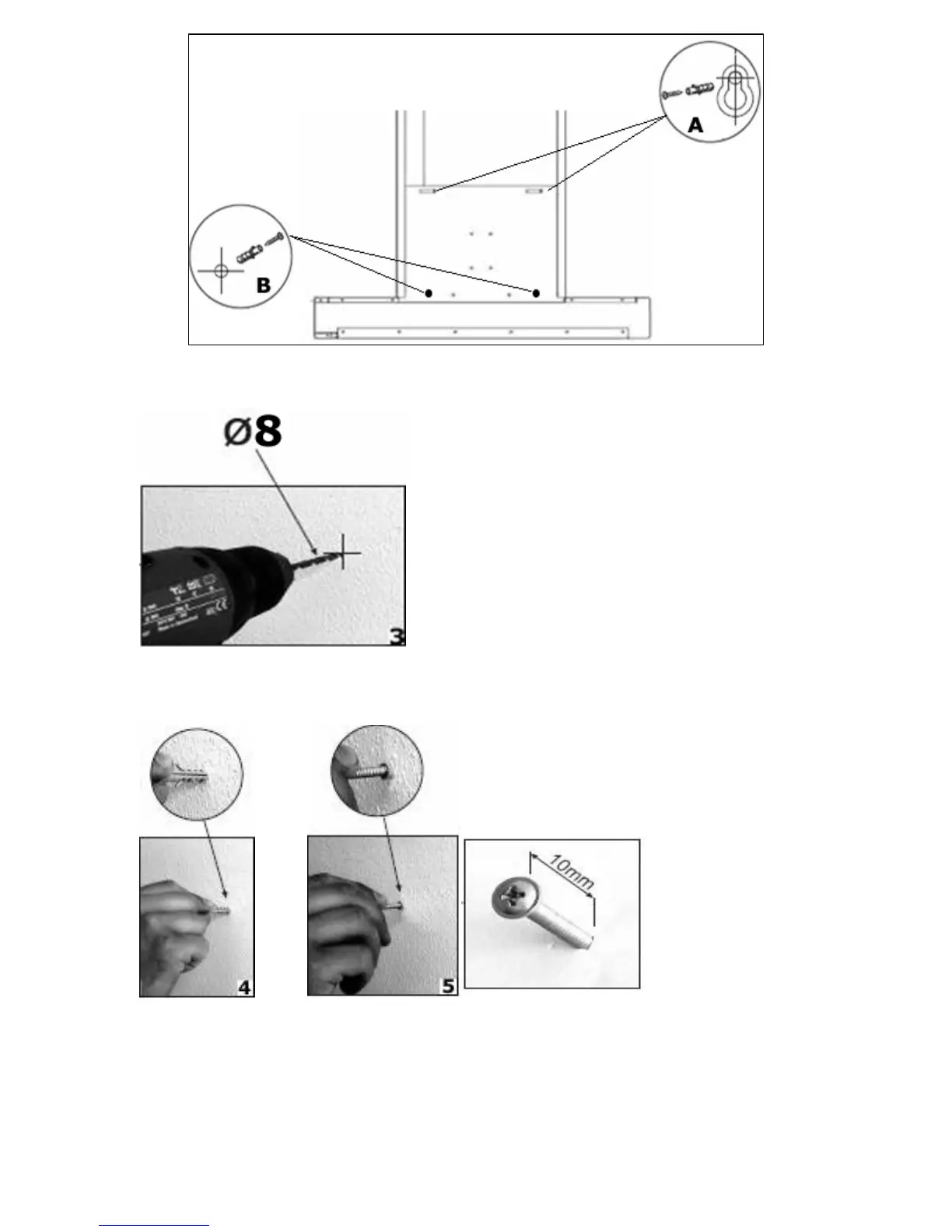 5) Fasten the support screws halfw y in, leaving them 10 mm out of