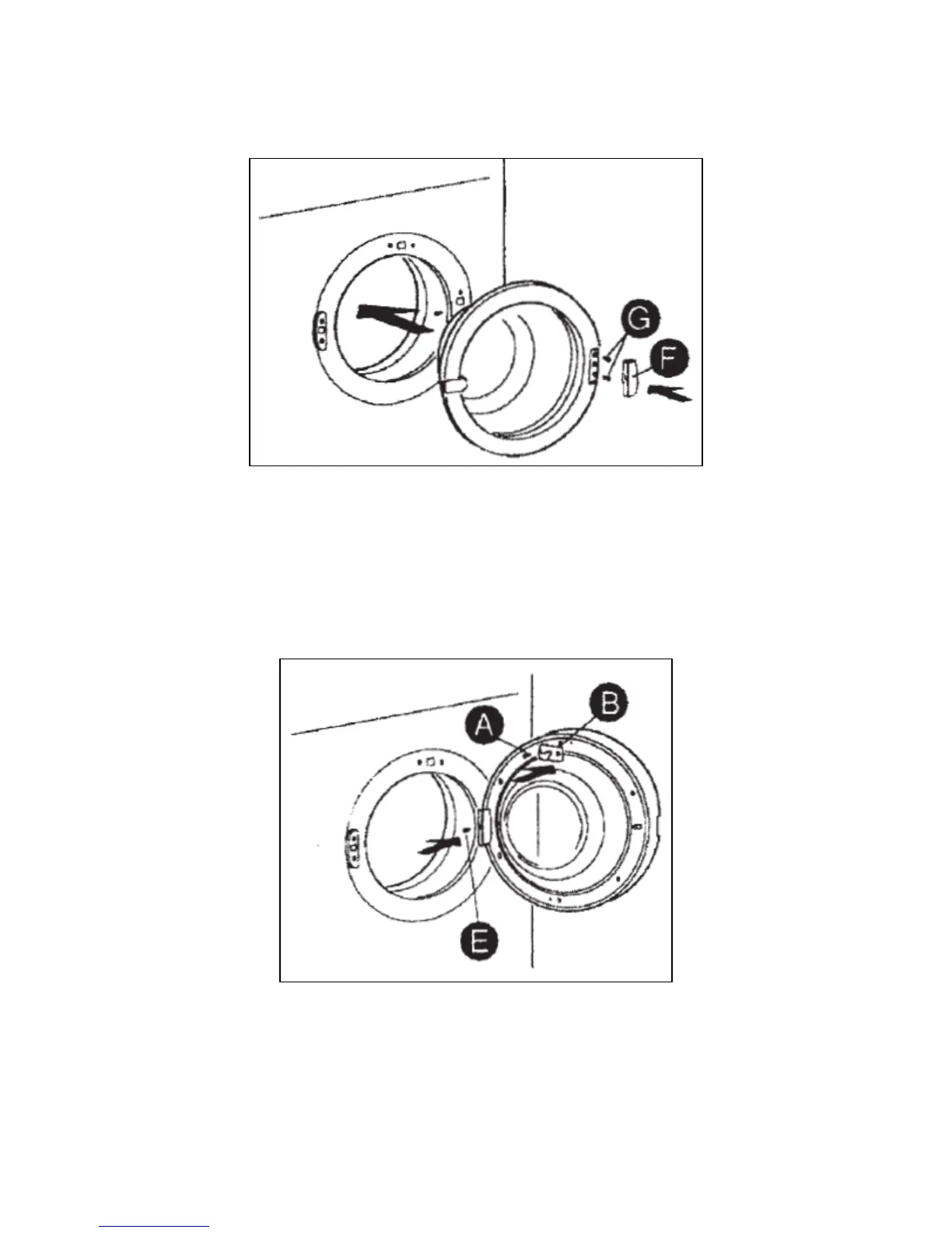o Remove the screw (A) at the top of the door and refit strike (B)