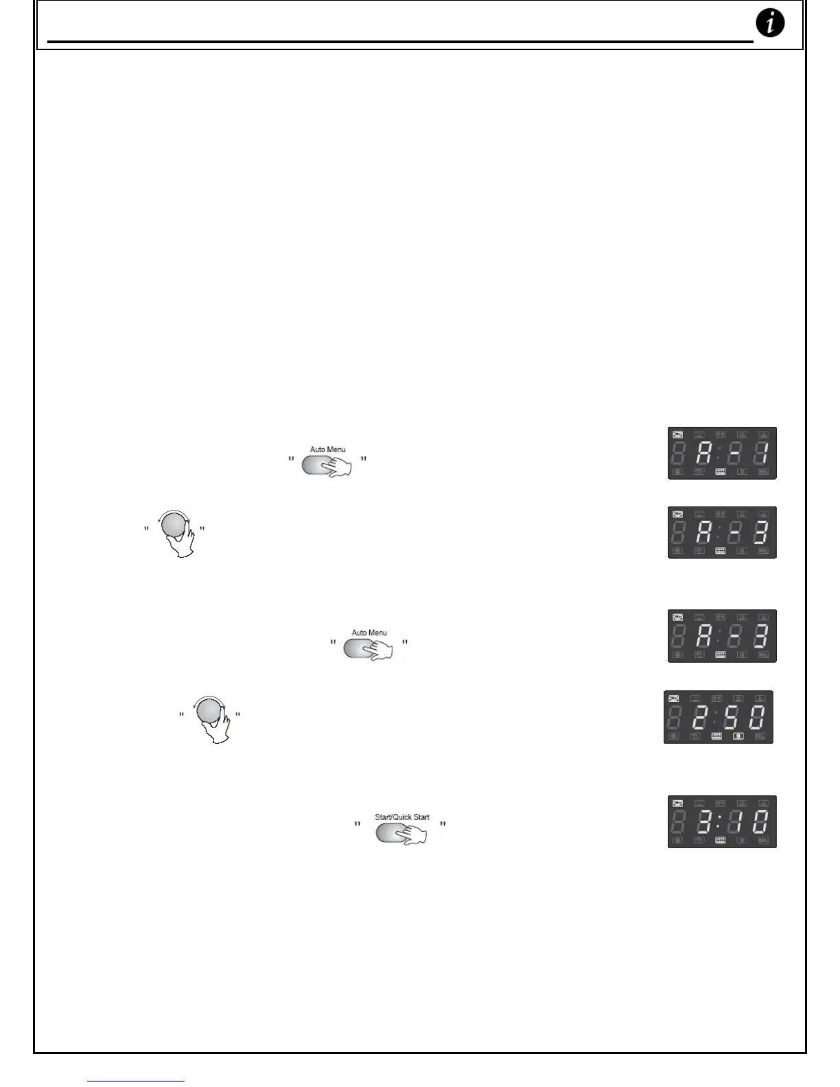 FOR EXAMPLE: If you want to use ‘Auto Menu’ to cook 250g
