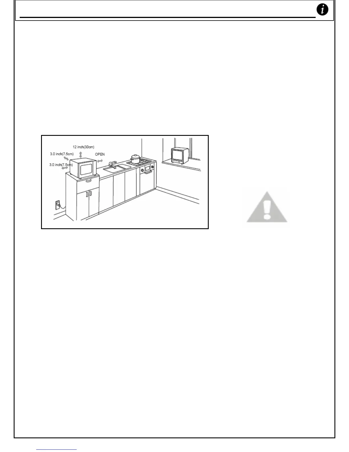 o LEAVE A MINIMUM CLEARANCE OF 12 INCHES (30CM) ABOVE