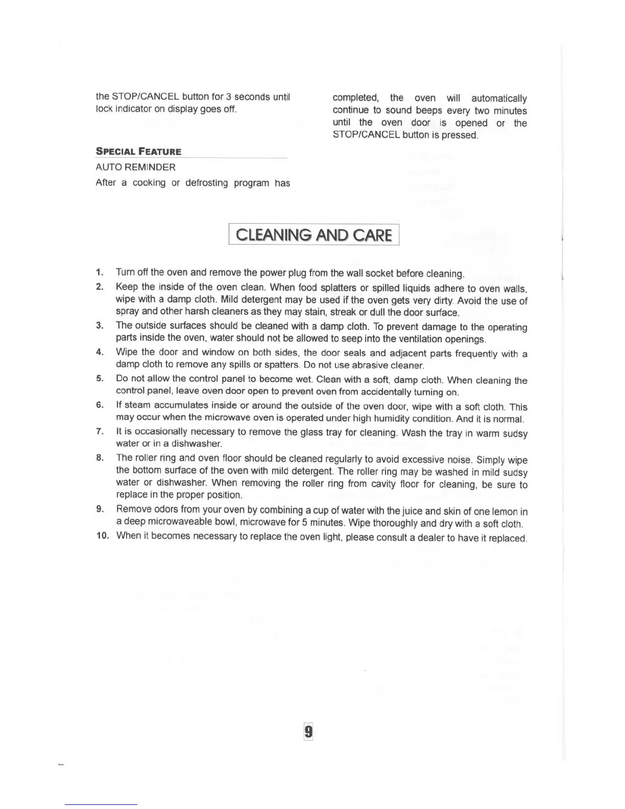 Baumatic BTM17SS - Special Features and Maintenance; Auto Reminder; Cleaning and Care