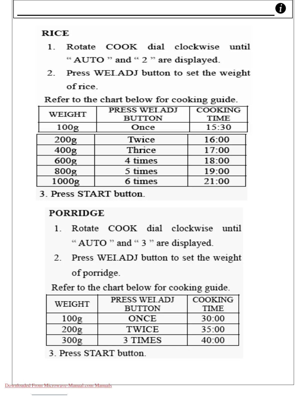 Baumatic BTM23.1SS - Auto Cooking Programs - Part 2