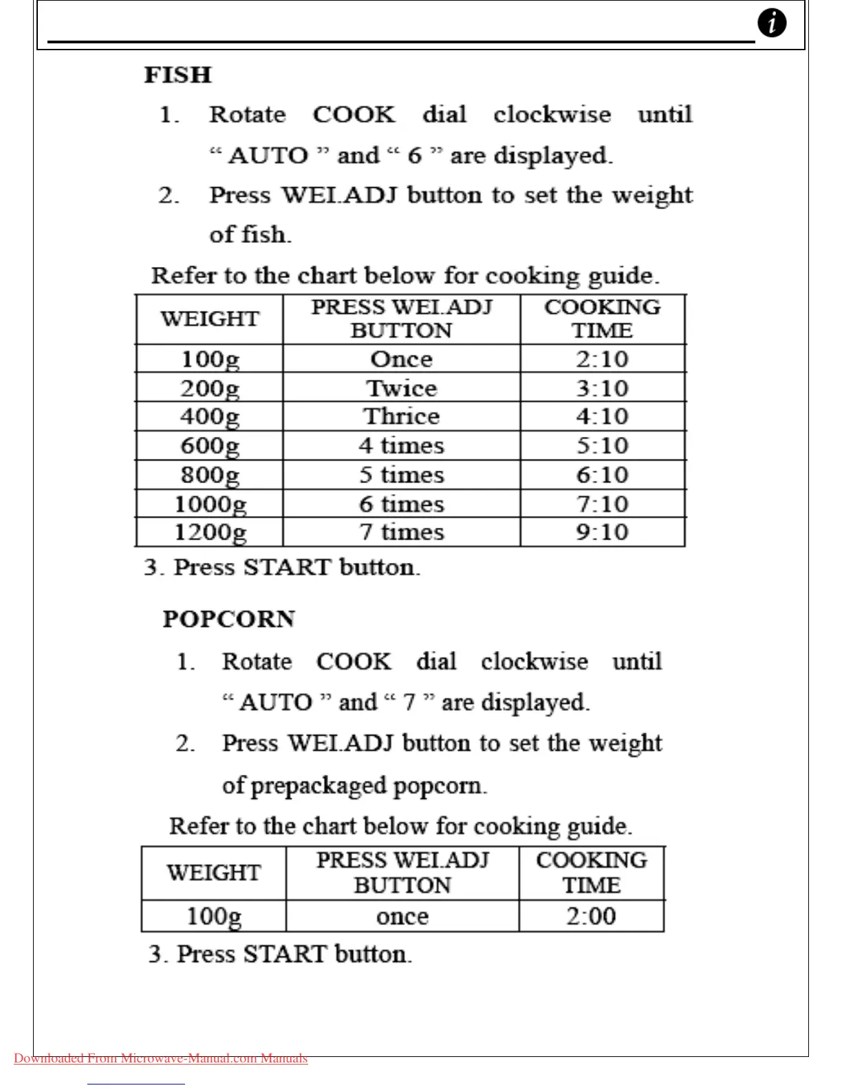Baumatic BTM23.1SS - Auto Cooking Programs - Part 4