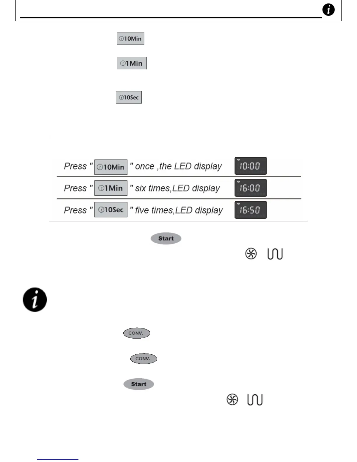 (each press raises the cooking time by 10 seconds).