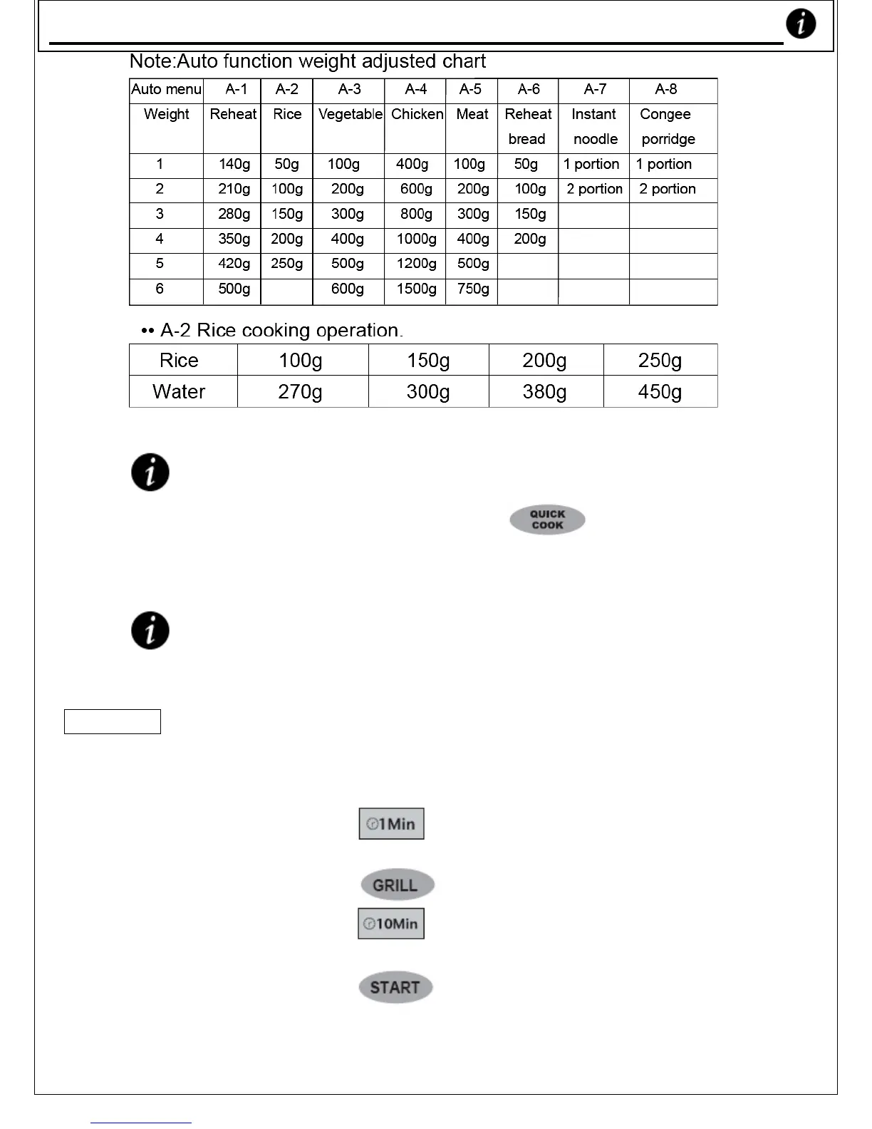 Example: Firstly cook food on full power for 5 minutes, then cook