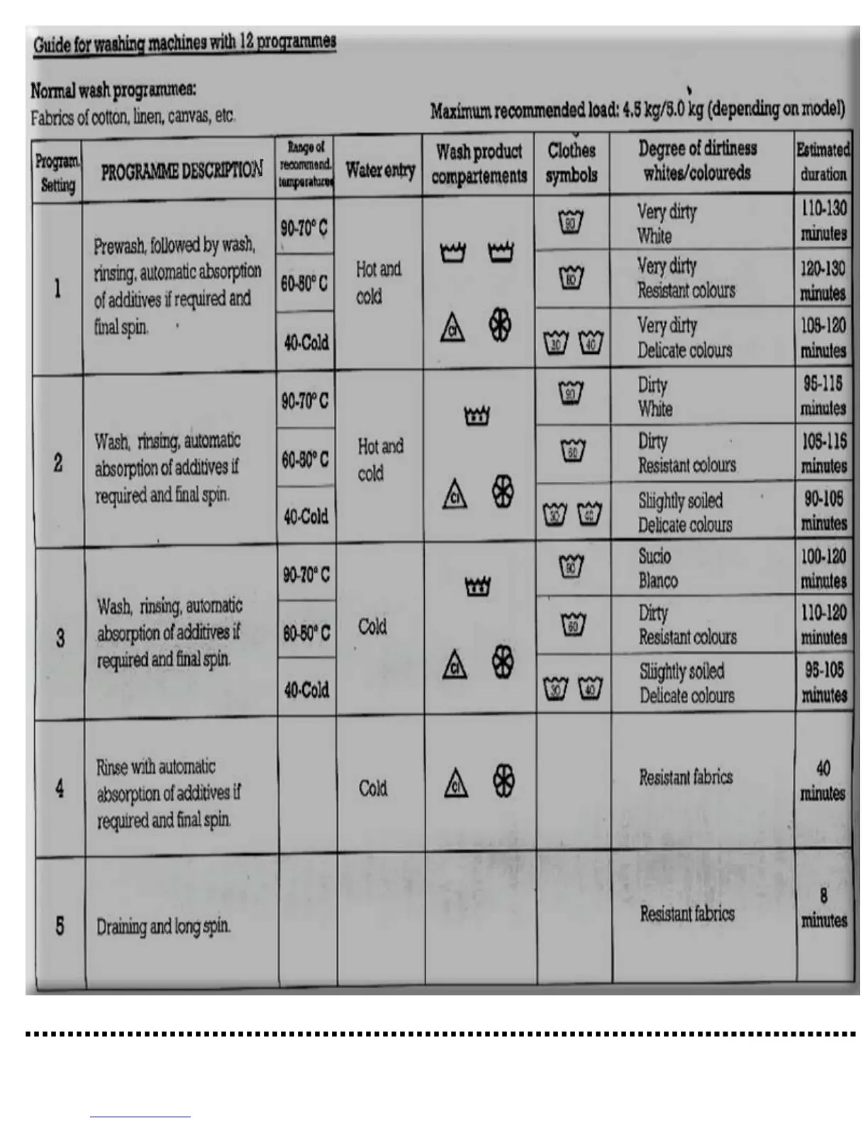 Baumatic BTWM4 - Programmes Description; Washing Programme Chart