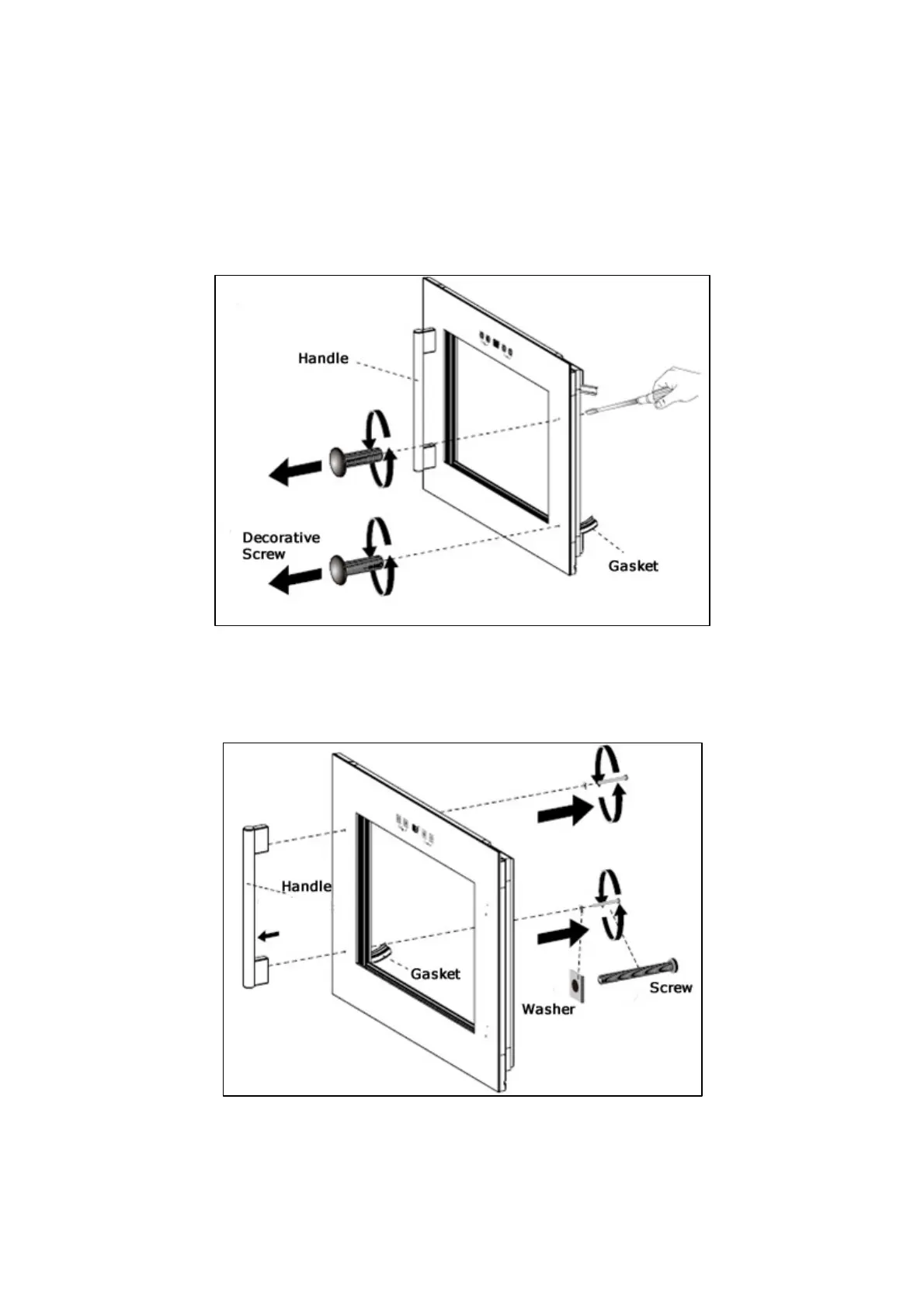3) Install the handle onto the outer right side of the door.