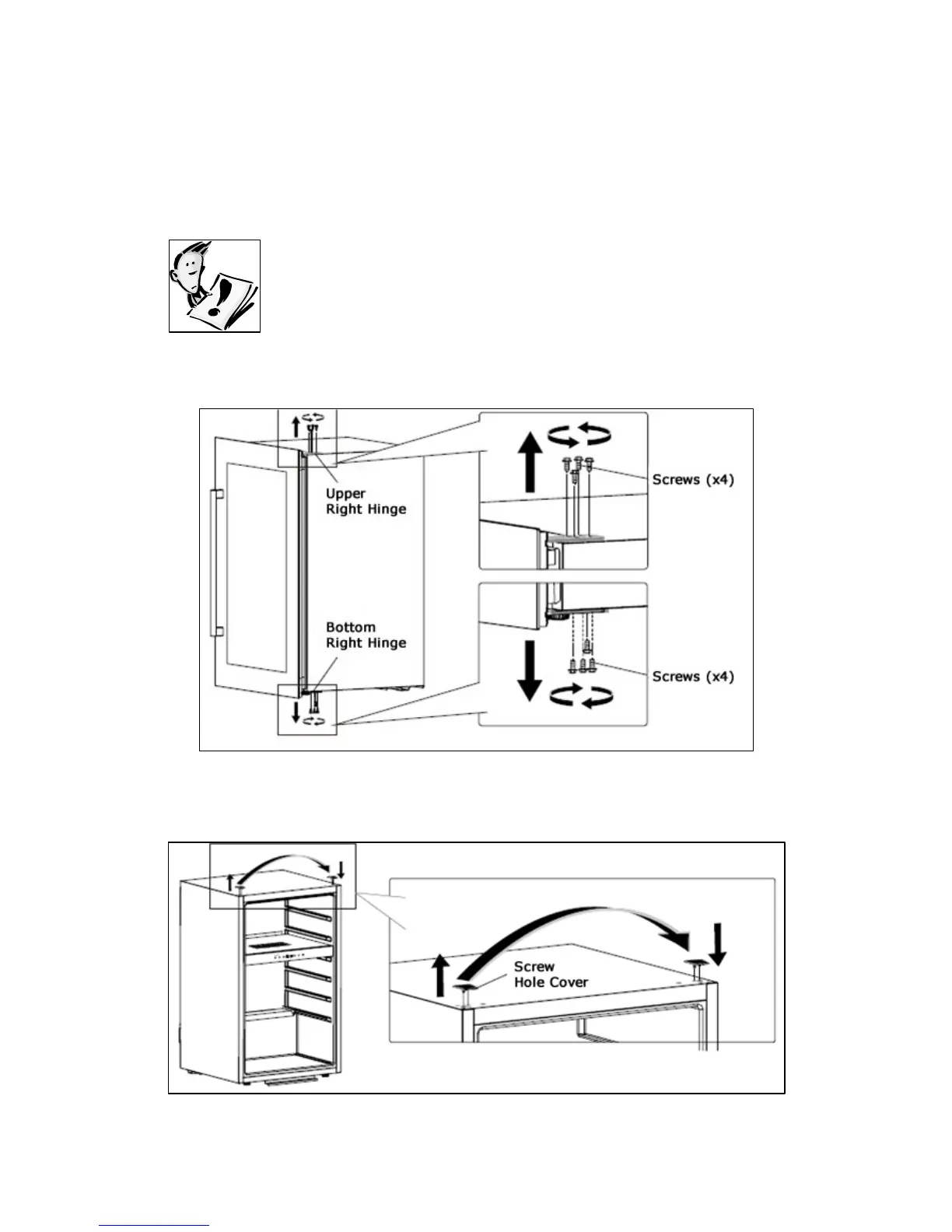 1) Unscrew the 8 screws from the upper right hinge and bottom