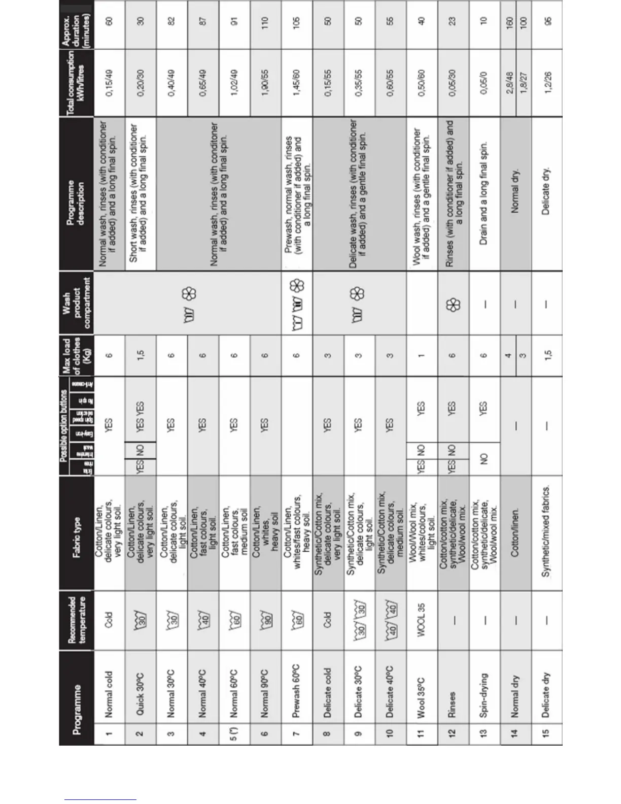 Baumatic BWD12.1 - Program Table; Programme Table