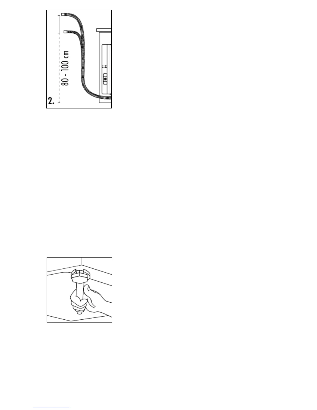 – 100 cm. Fix the drain hose to the clip at the
