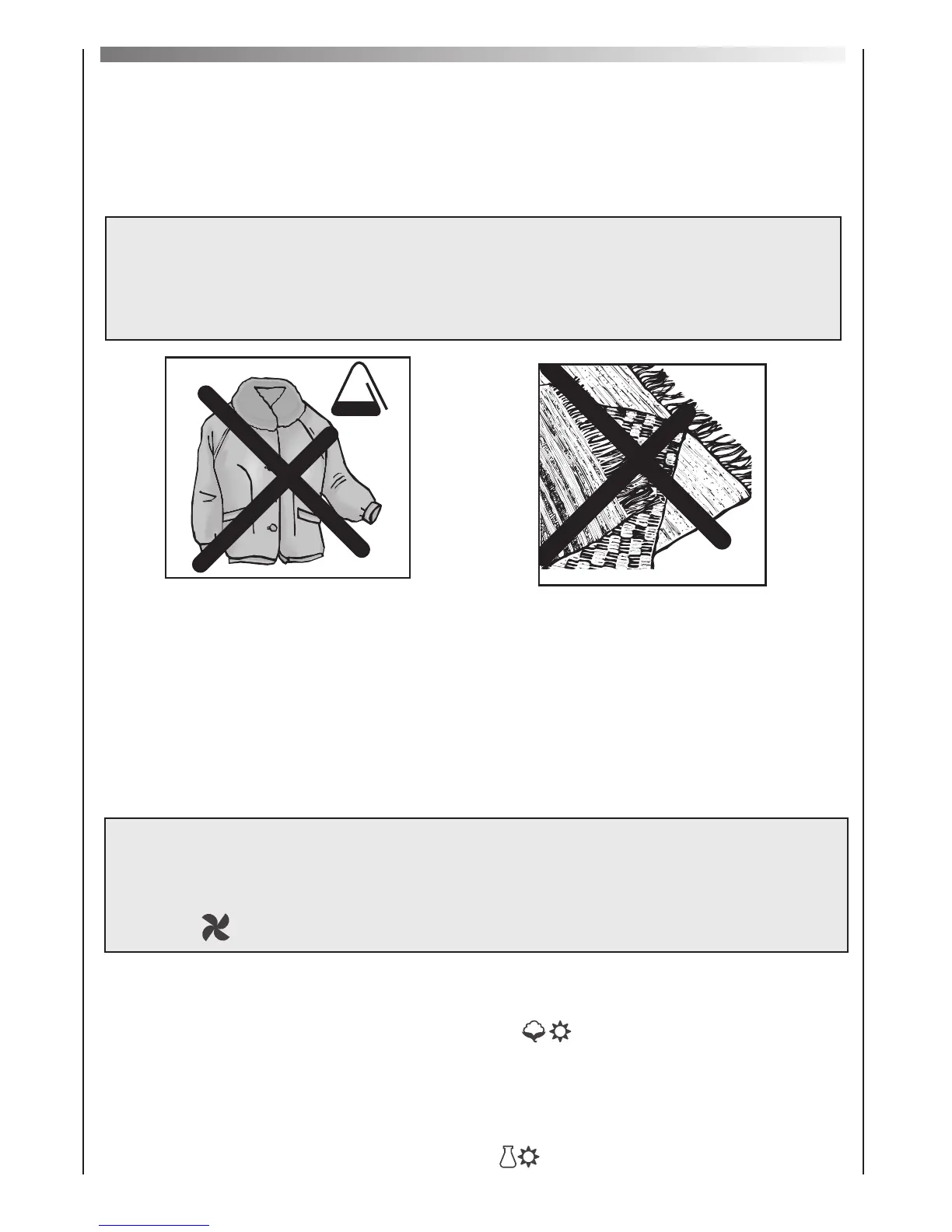 such as rugs or garments with a deep pile, to avoid air duct clogging.