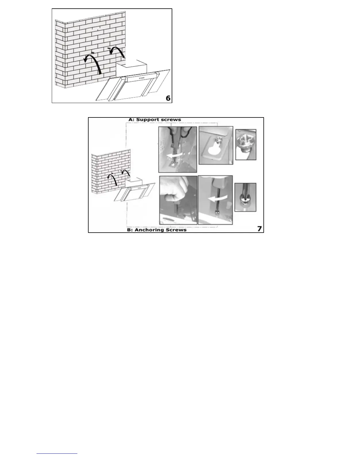 screws (B) through the relevant holes in the cooker hood. Tighten the