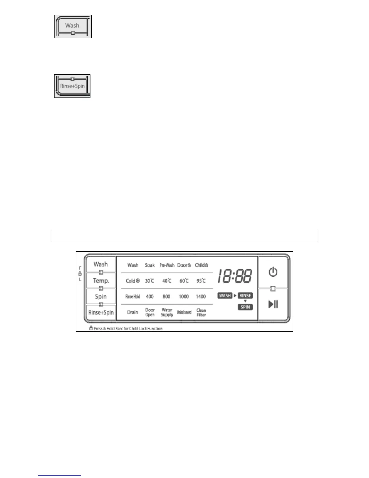 7) Rinse + Spin button. You can select the rinse and