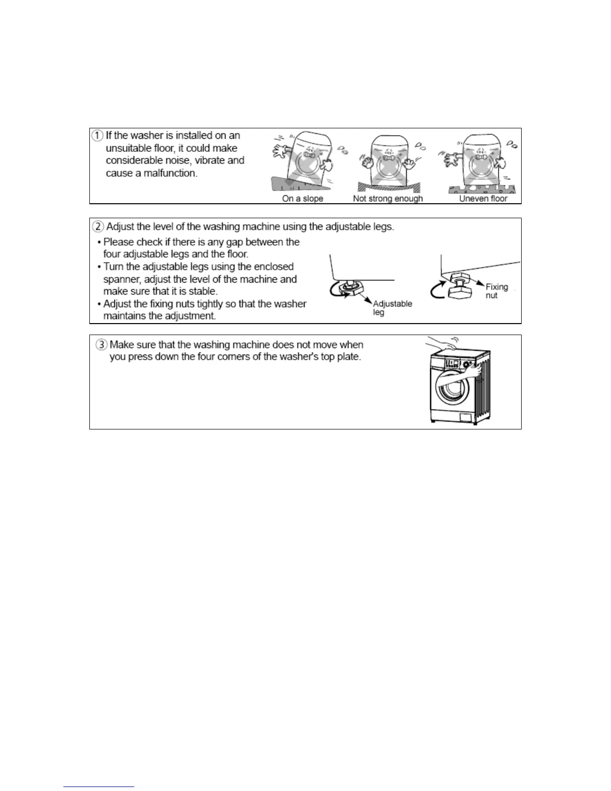 9 DO NOT PLACE THE WASHING MACHINE ON A CARPET