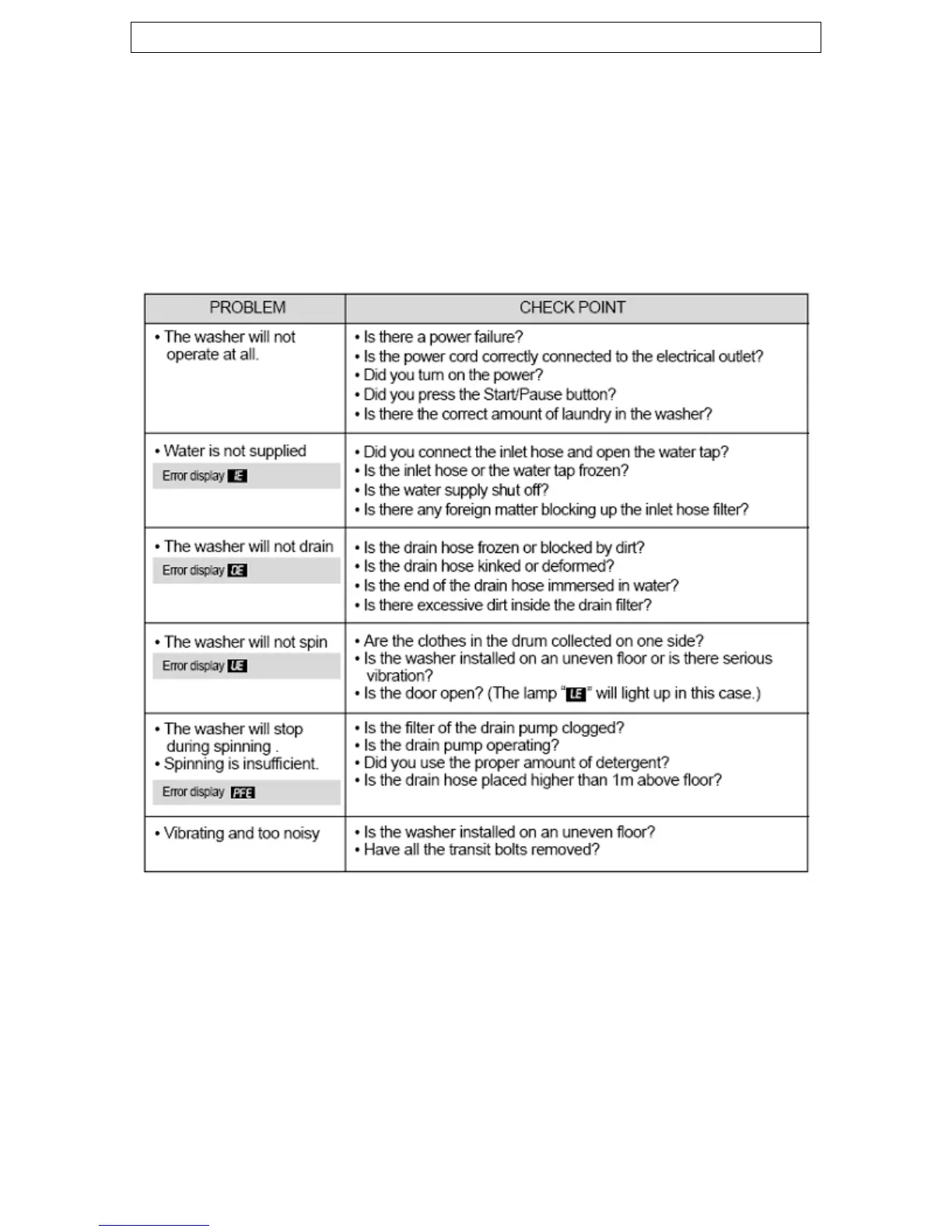o If IE, LE, OE or UE are displayed on the LED display, you should