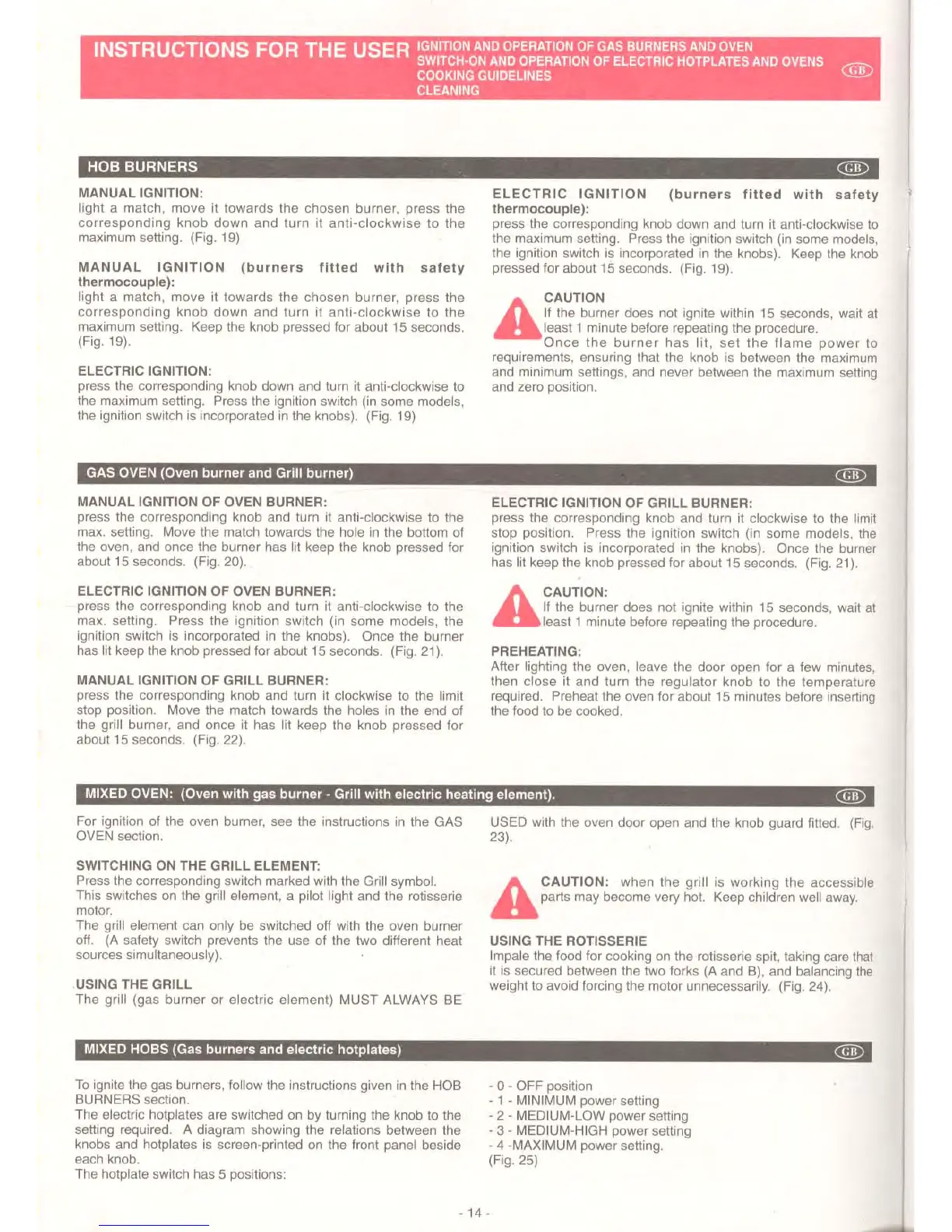 Baumatic Cooker - User Instructions for Operation; Hob Burner Ignition and Control; Gas Oven Ignition and Operation; Electric Oven Ignition and Operation