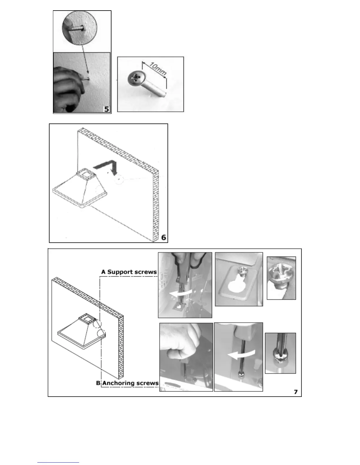 screws (B) through the relevant holes in the cooker hood. Fully