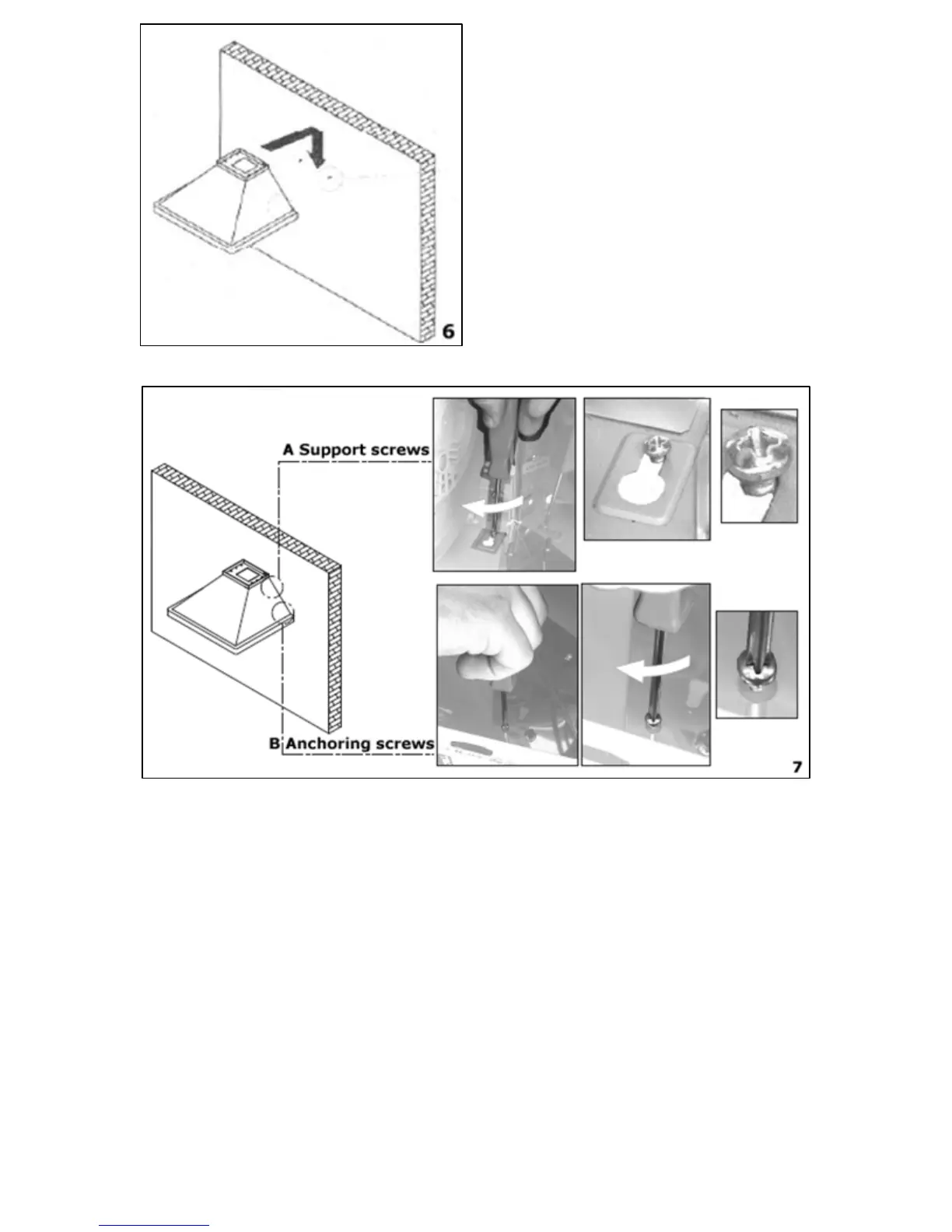 screws (B) through the relevant holes in the cooker hood. Fully
