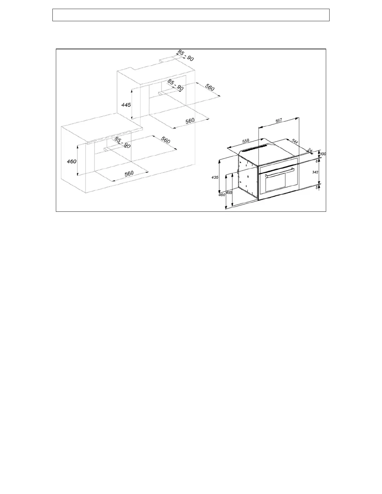 Height: 460 mm 450 mm (built in)