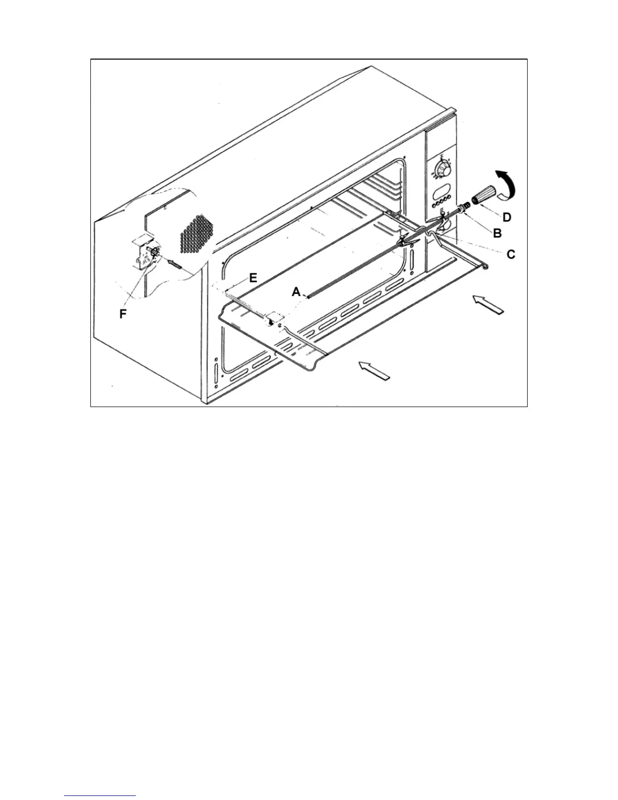 o The spit rack must ALWAYS be fitted into the middle of the oven.