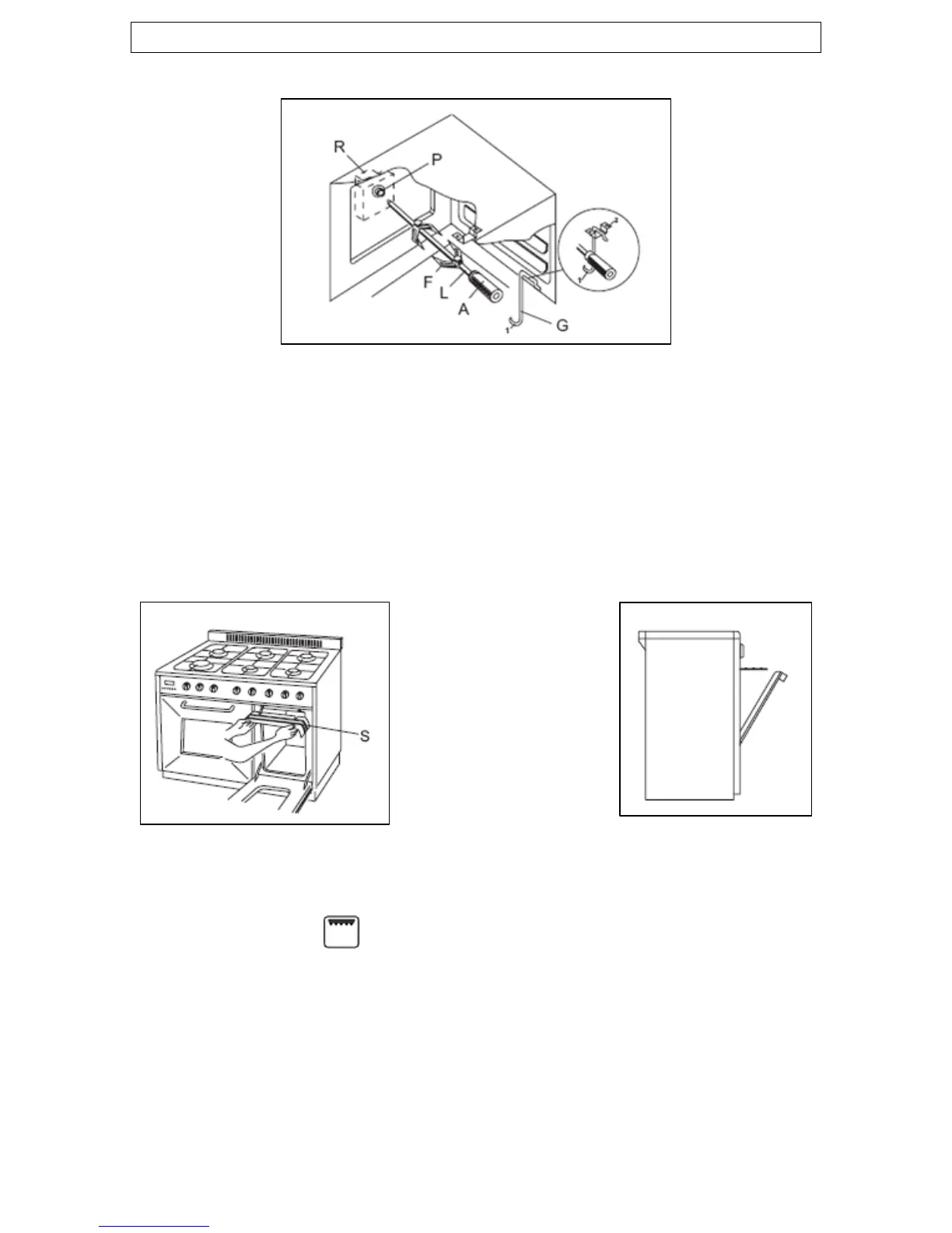 o Fit the grill deflector (S) into position and leave the door half