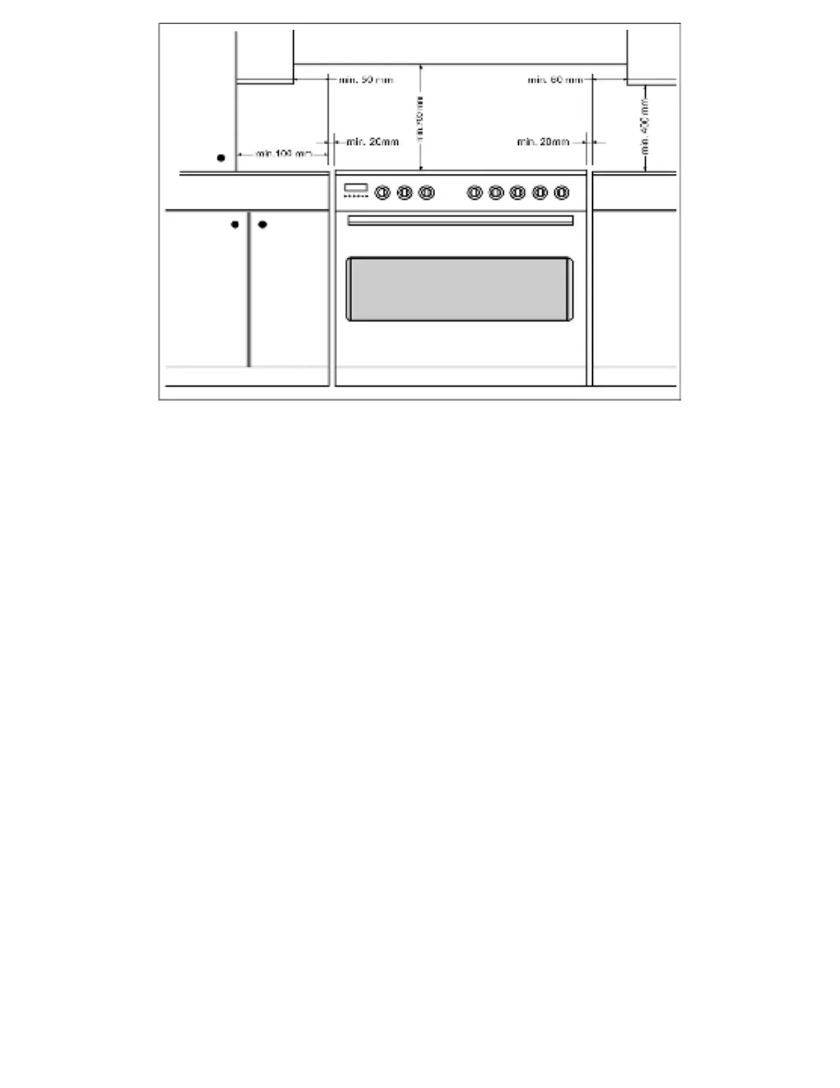 o Any overhanging surface or cooker hood should be at least 700