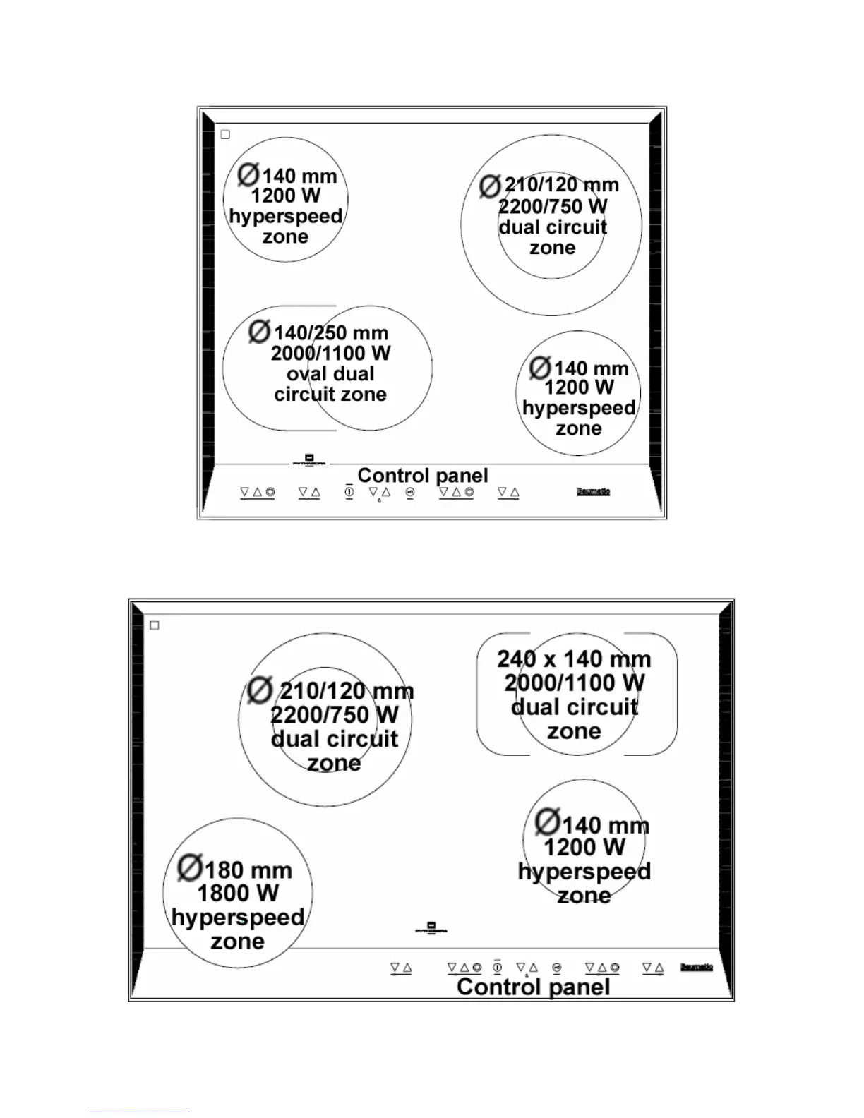 Baumatic PHC620SS - Ceramic Hob Surface Layout