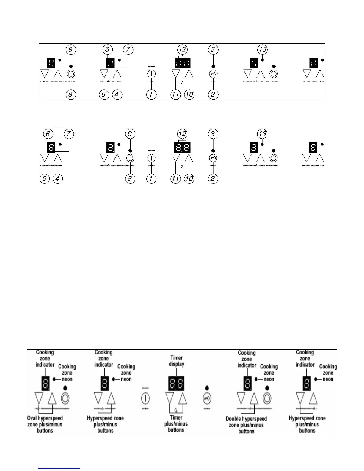 Baumatic PHC620SS - Control Panel Layout; Cooking Zone Indicators and Neons