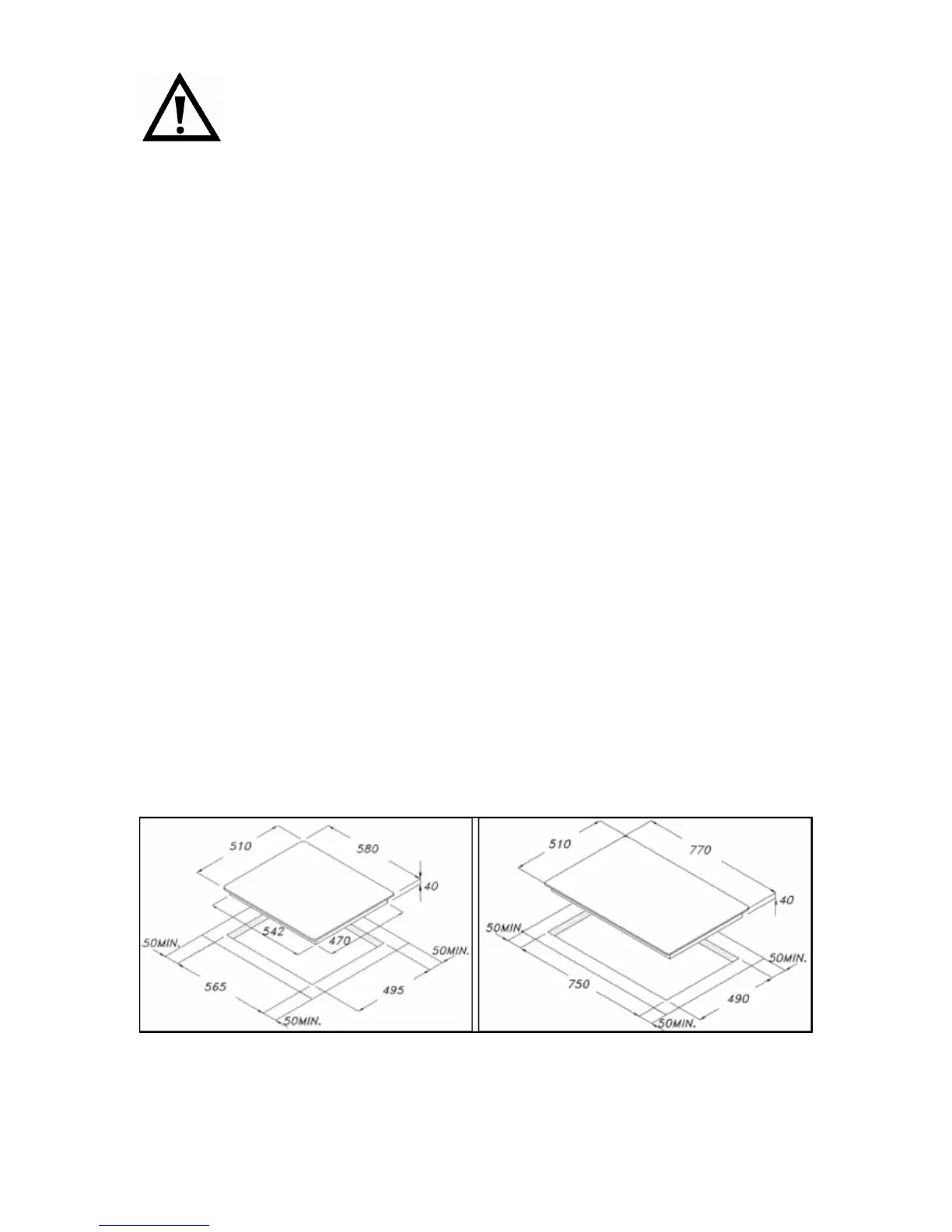 o 50 mm clearance around the appliance and between the hob