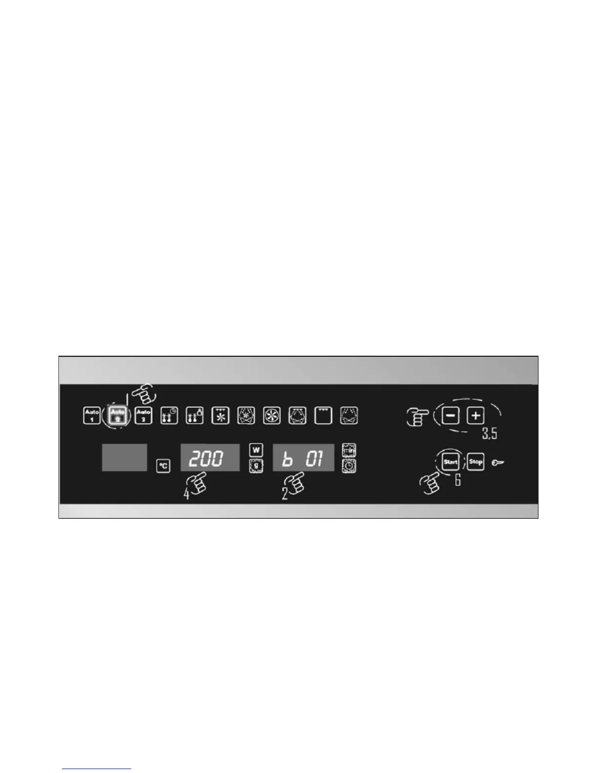 o Press the Auto 2 button, b 01 will appear on the cook time
