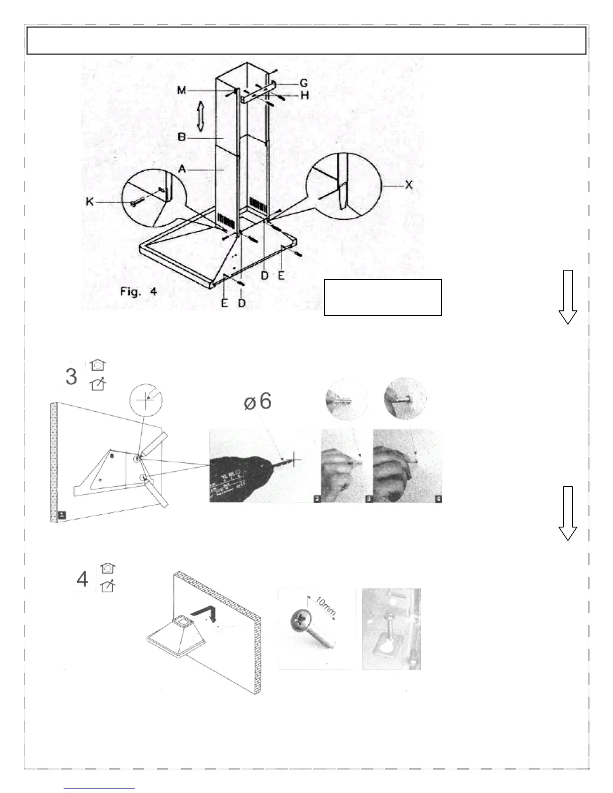 5) Hook the hood onto the screws (see above figure, at left) and fasten it onto