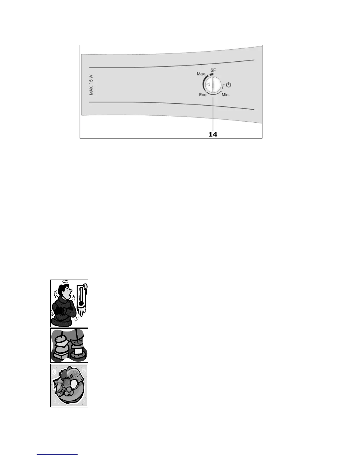 o To turn off the fast freeze function, turn the thermostat dial (14) back to the Eco. position.