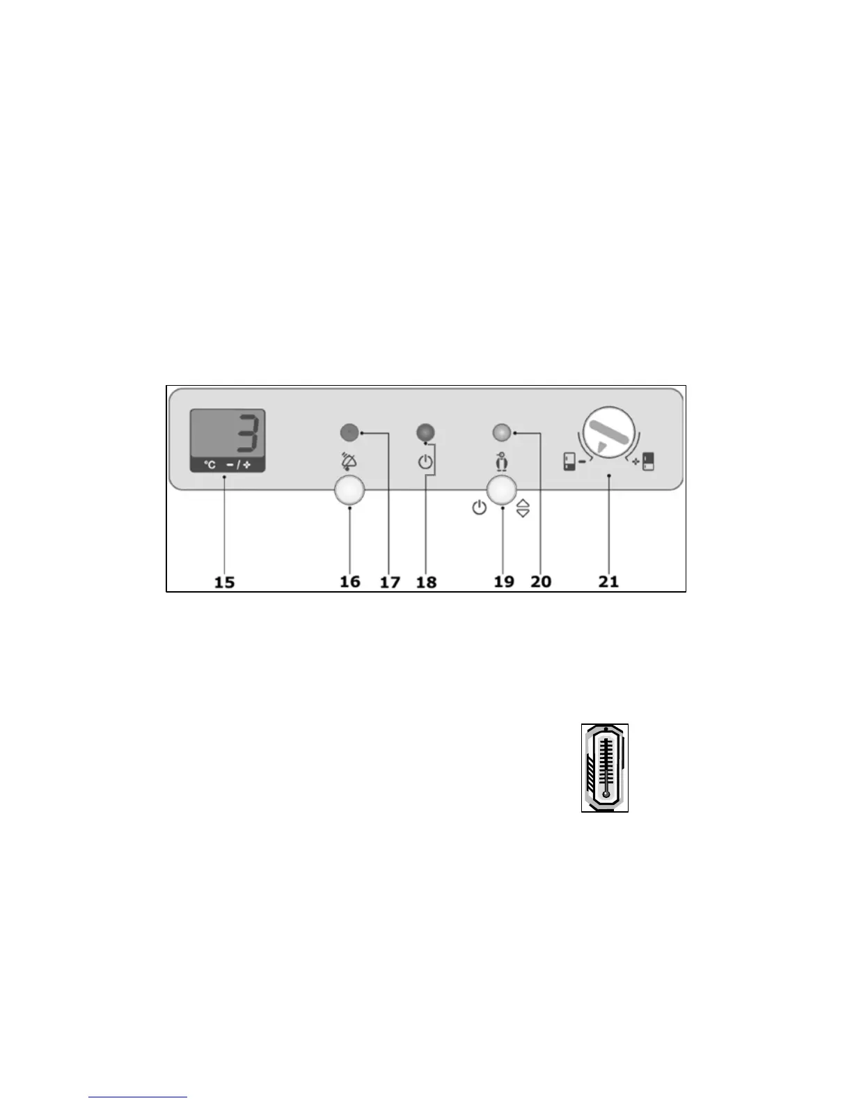 display (15). Whilst you are setting the temperature, the LED display (15) will flash.
