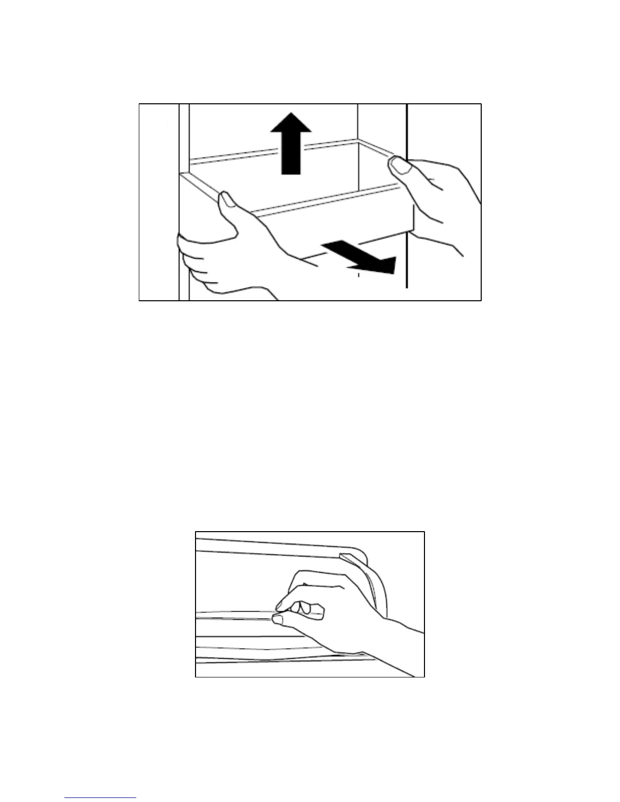 o Hold both sides of the shelf then lift it upwards and pull it