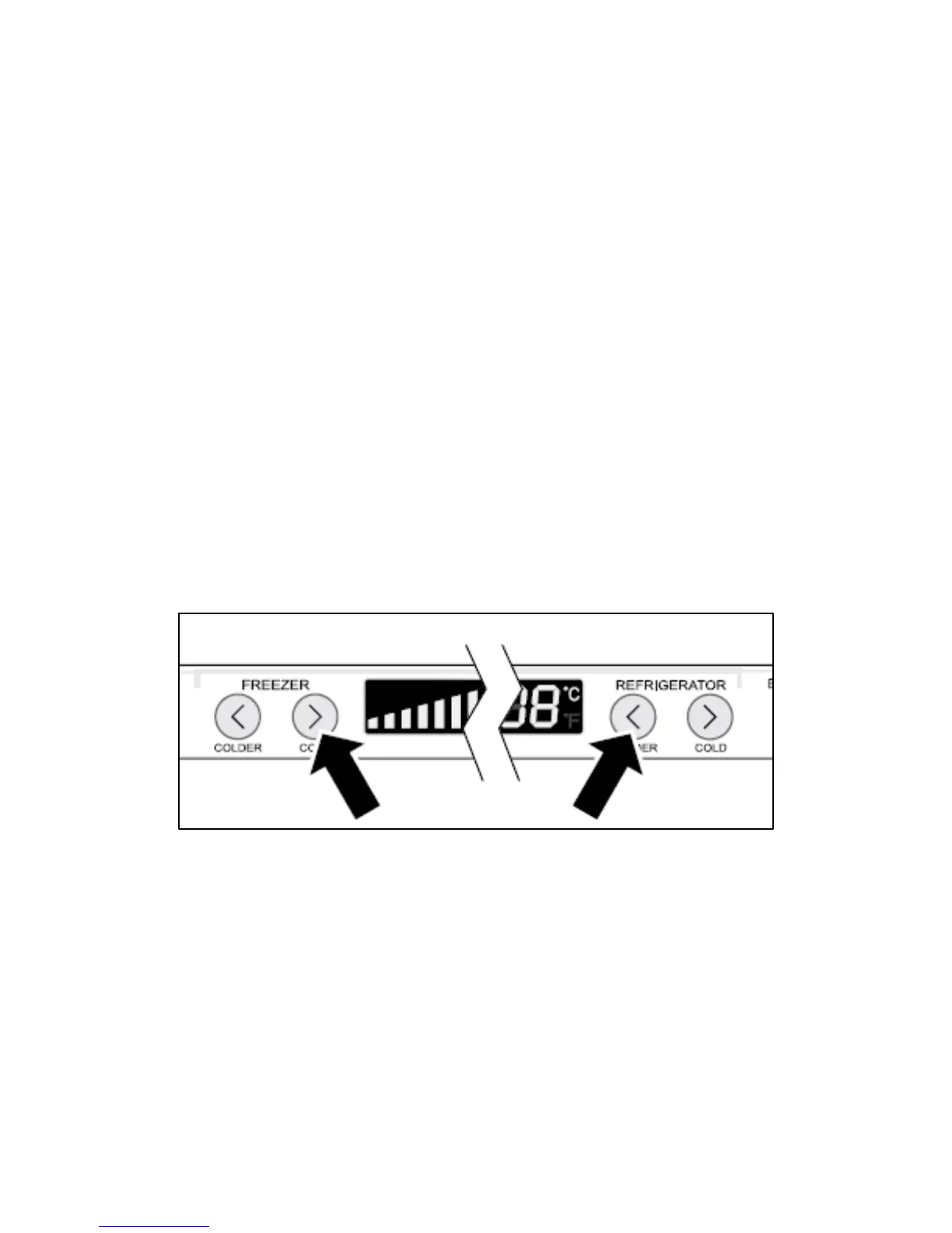 adjustment button and the fridge section “<” fridge temperature