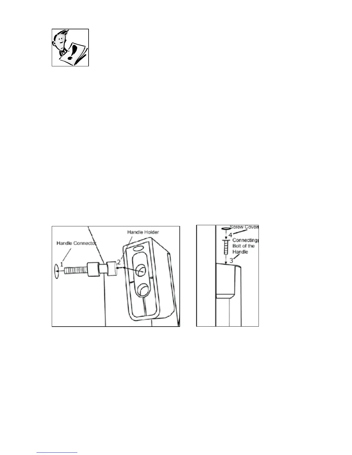 o Insert the connecting bolt of the handle into the two holes of the